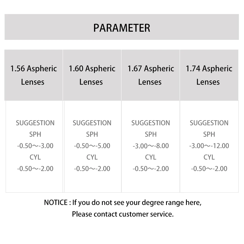 Примечание: линзы по рецепту под одним из четырех ниже условий относятся к индивидуальным объективам, фабрика линз должна изготовить линзы специально для вас, они будут запрашивать дополнительную стоимость 10 или 20 долларов США. Спасибо за понимание!
