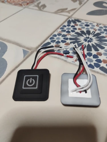 I received this with 4 wire (instead with 3) red black and two white. It is better for connecting, because two whites are for heater and black and red are for supply. Long pres for ON, then every pres for one stage, 100% heater is connect to suplly. 70% means that 1s is ON and 0.3s is OFF. 35% means that heater is ON for 0.3s and OFF for 1s. Simply PWM control, but good. Back side is waterproof.