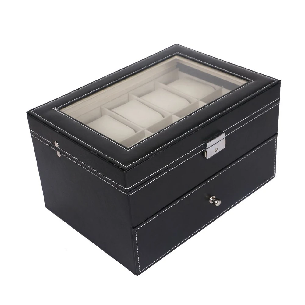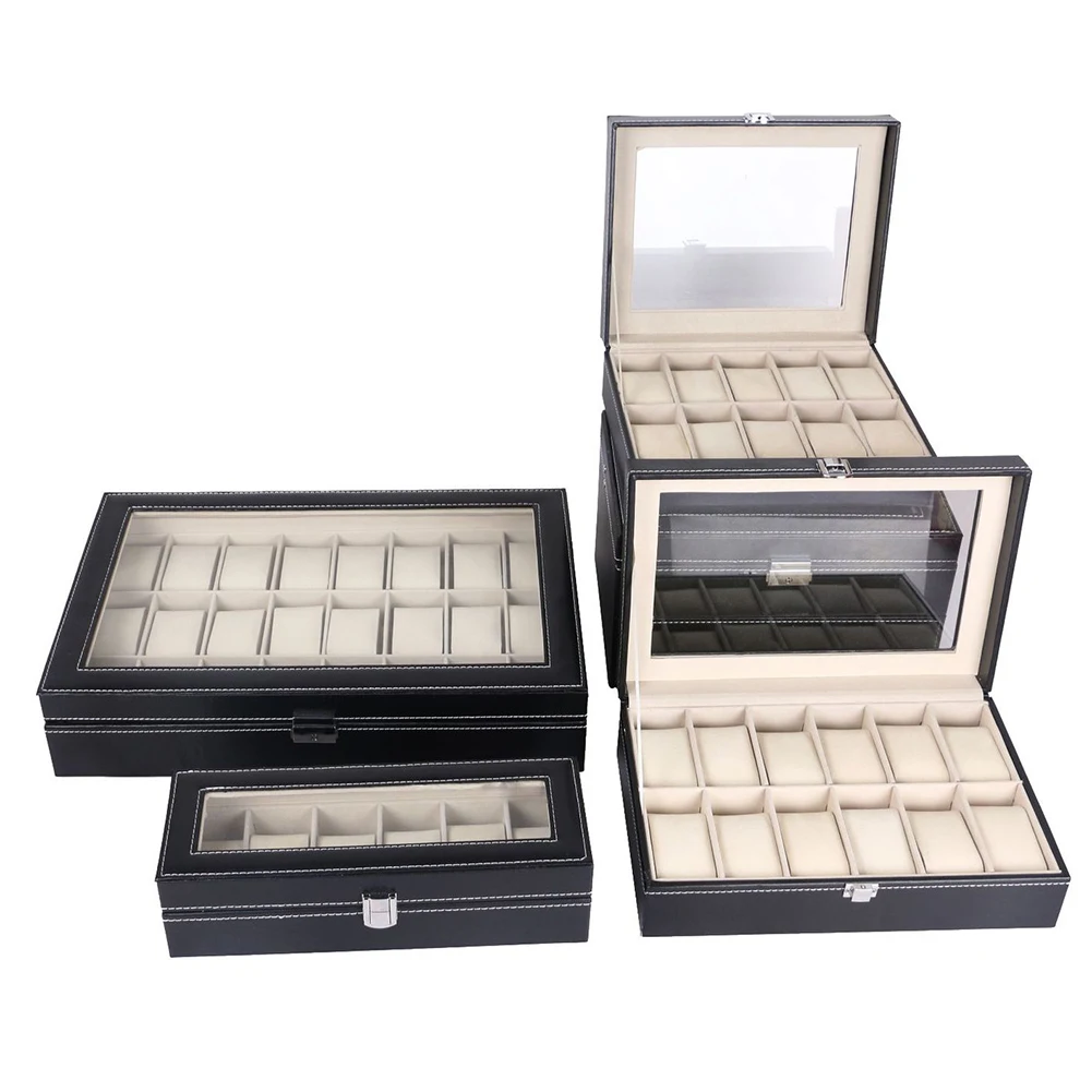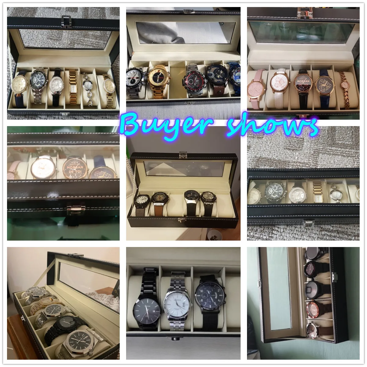 6101220 оконный органайзер ящик слотов для карт из искусственной кожи сетки кварцевые наручные часы коробка для хранения ювелирных изделий, Дисплей чехол для хранения