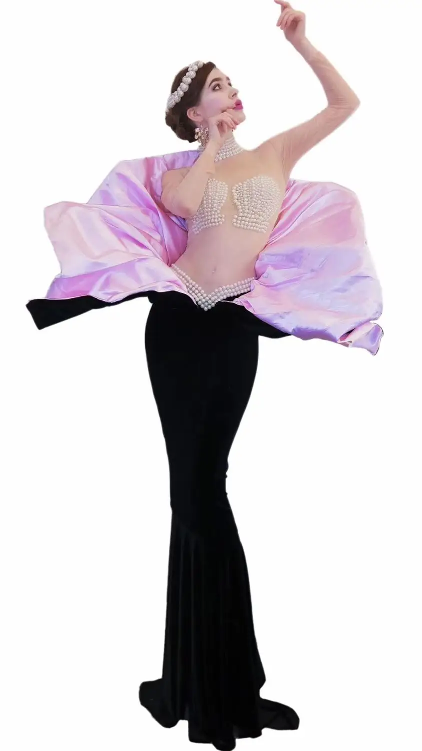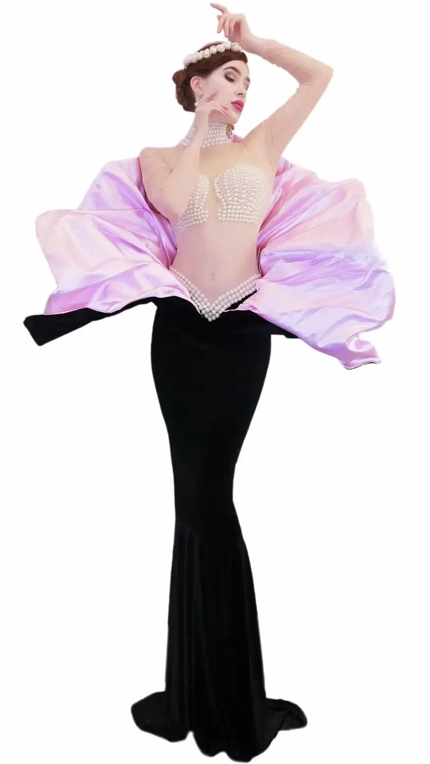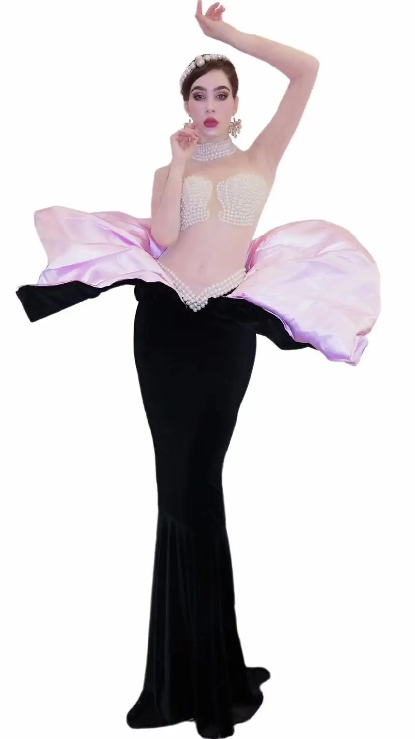 Женское Прозрачное платье с длинными рукавами, длинное платье с жемчугом для дня рождения, бара, танцора, шоу