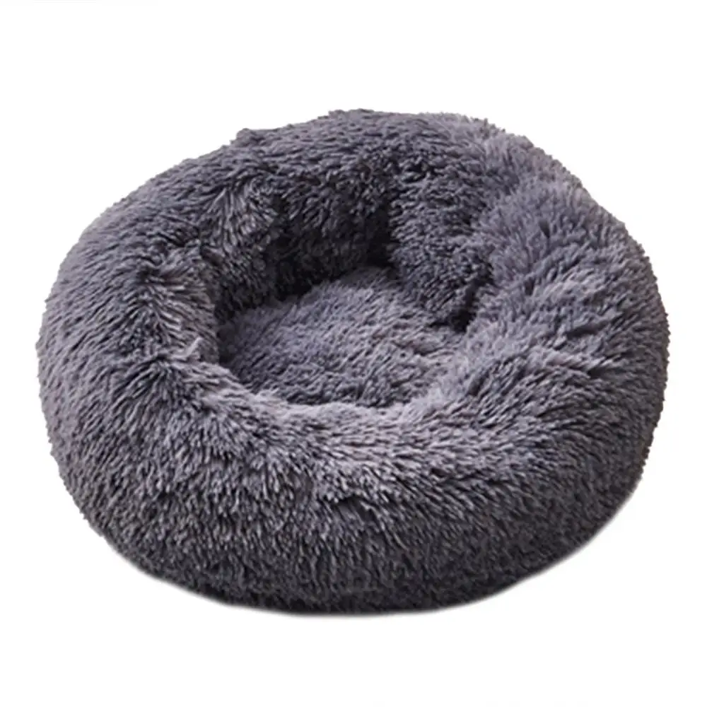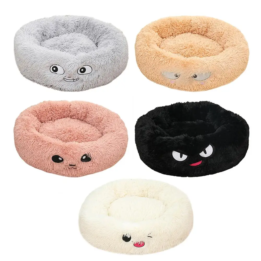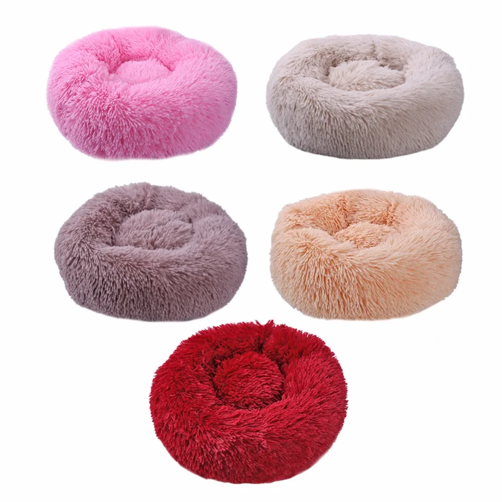 Круглая мягкая Лежанка для собак, моющаяся длинная плюшевая кровать, домик для кошек, бархатный коврик, диван для собак чихуахуа, корзина для питомца