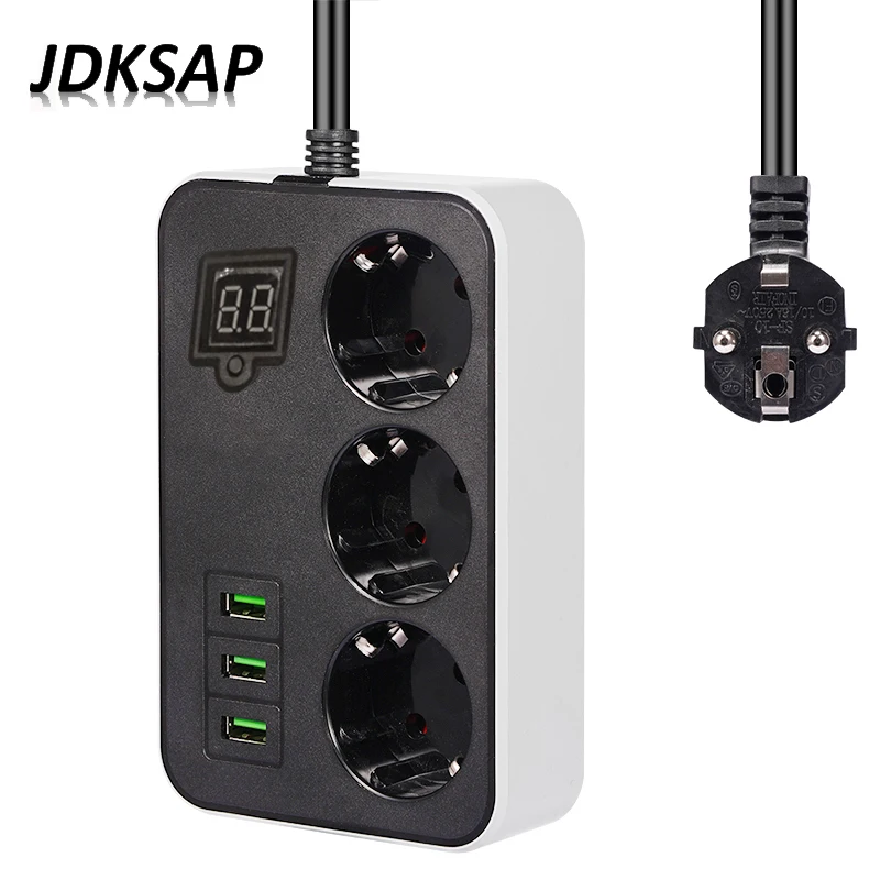 Сетевой фильтр, 2 круглых контакта, штепсельная вилка европейского стандарта, плата питания, переключатель 1,8, кабель с 3 разъемами USB гнездо для шнура удлинителя