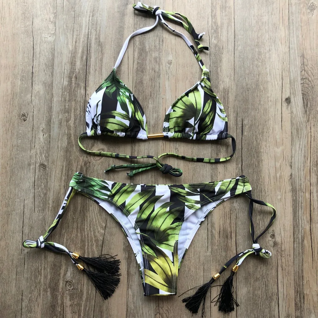 Feshion женский сексуальный комплект бикини Горячая печать Спорт Купальники пуш-ап Мягкий купальник