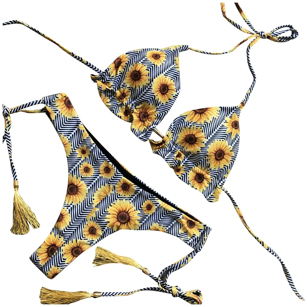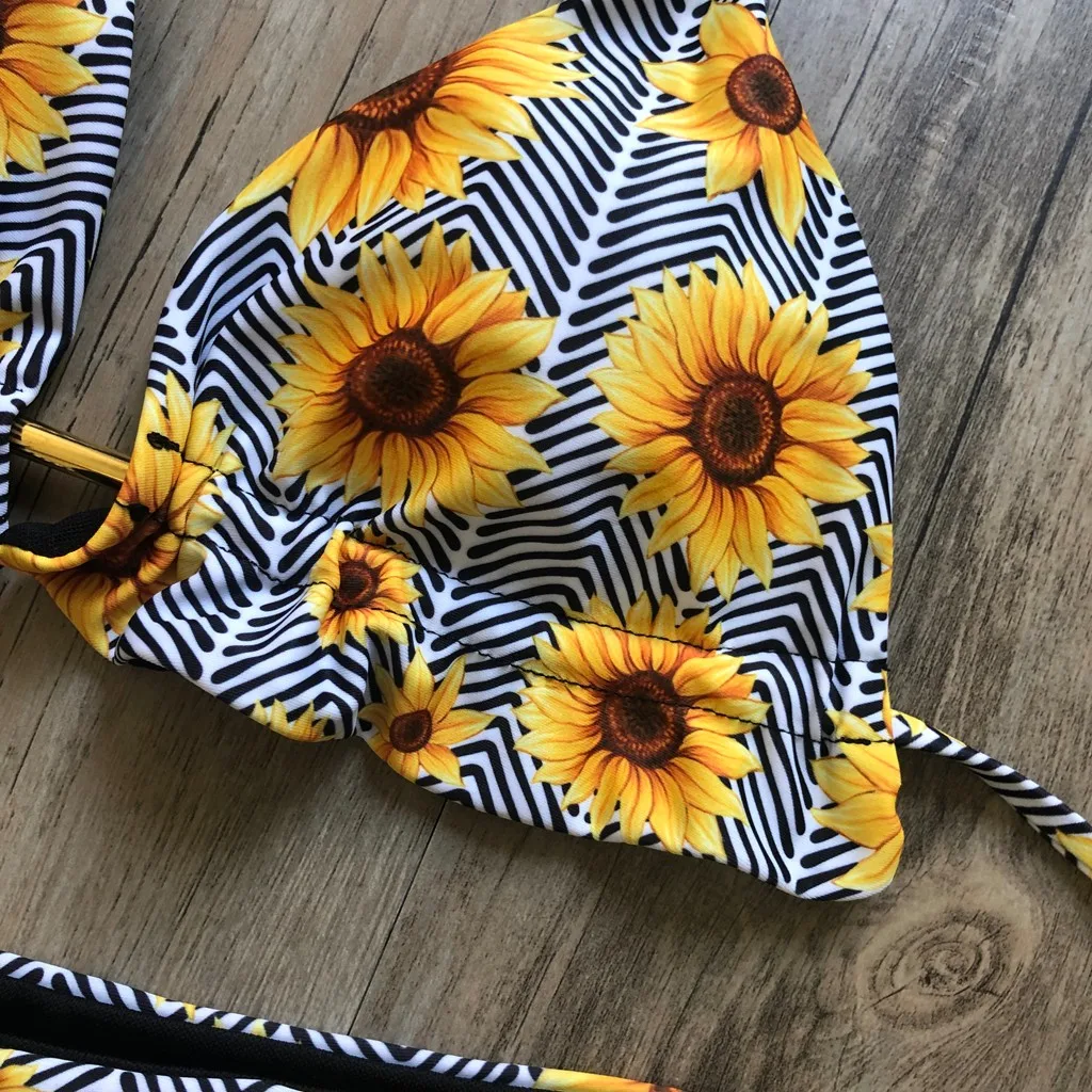 Женский спортивный комплект бикини купальник с принтом подсолнухов,...