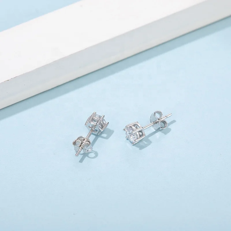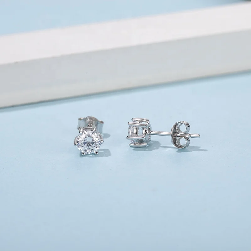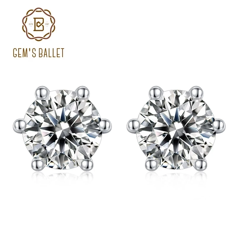 GEM'S балет 6 зубцов серьга с муассанитом 925 стерлингового серебра яркие 5 мм круглые серьги-гвоздики ювелирные изделия для женщин Свадьба