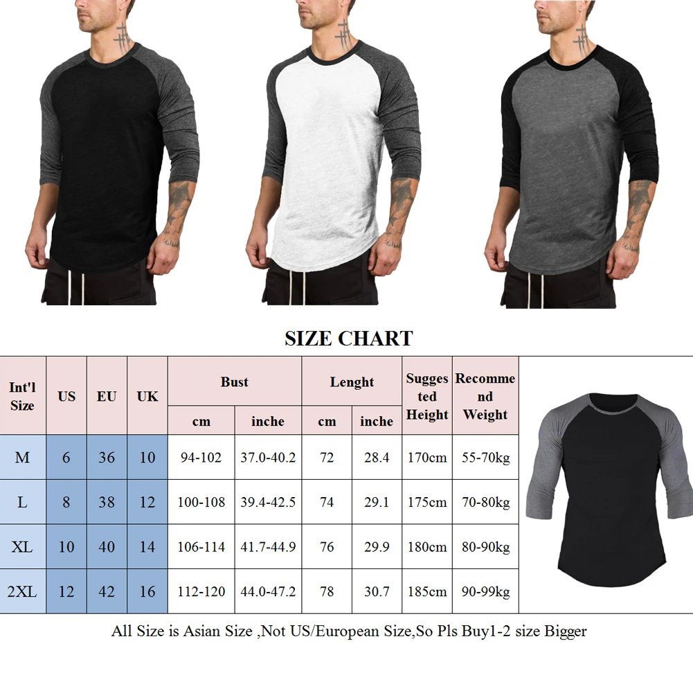 Модные мужские 34 рукав реглан Бейсбол Slim Fit с О-образным вырезо...