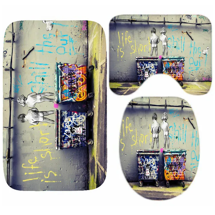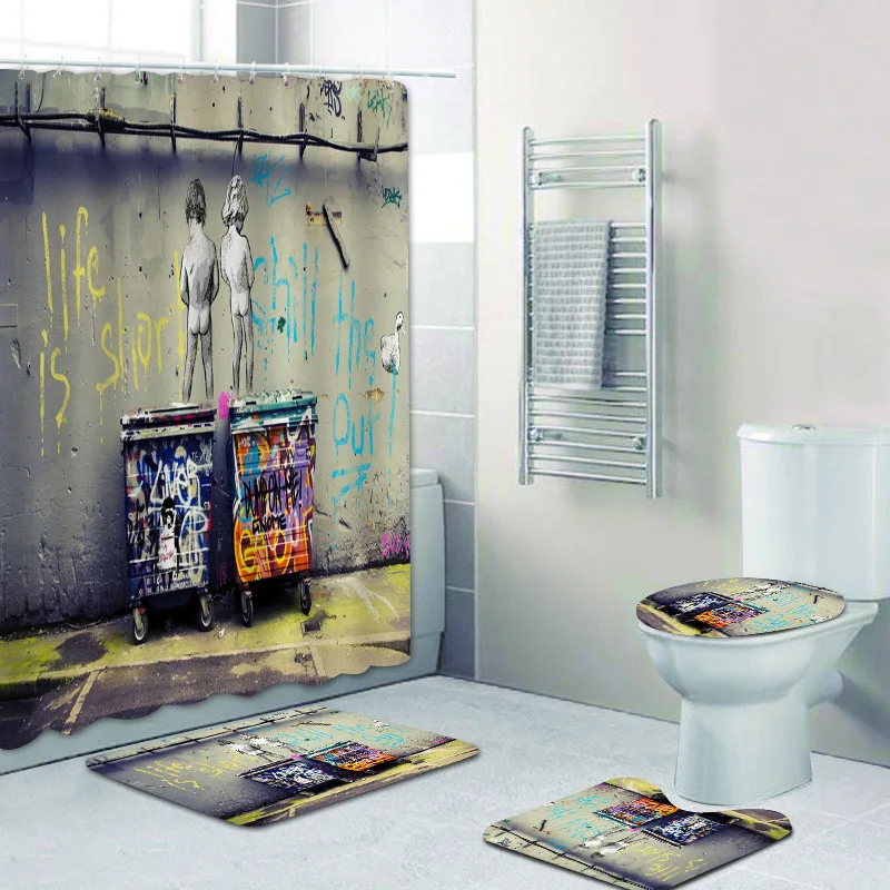 Банкси граффити Искусство Живопись Душ занавес набор уличное искусство жизнь короткий охладить утки из ванной занавески коврики для ванной ковер Декор