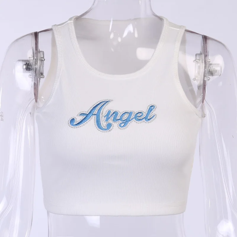 Женский топ на бретелях с вышитыми буквами, тонкий хлопковый Повседневный Топ без рукавов, вечерние топы для улицы, лето 2020
