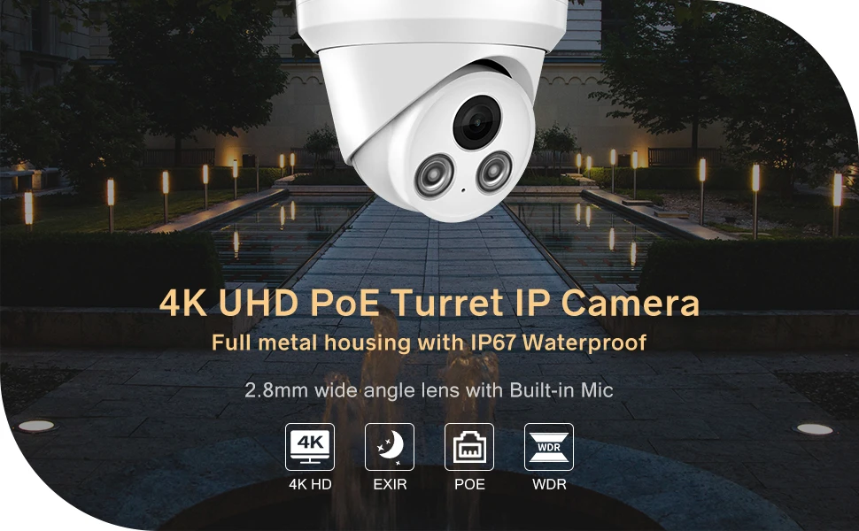 IP-камера купольная 4K HD, 8 Мп, 5 МП, со встроенным микрофоном
