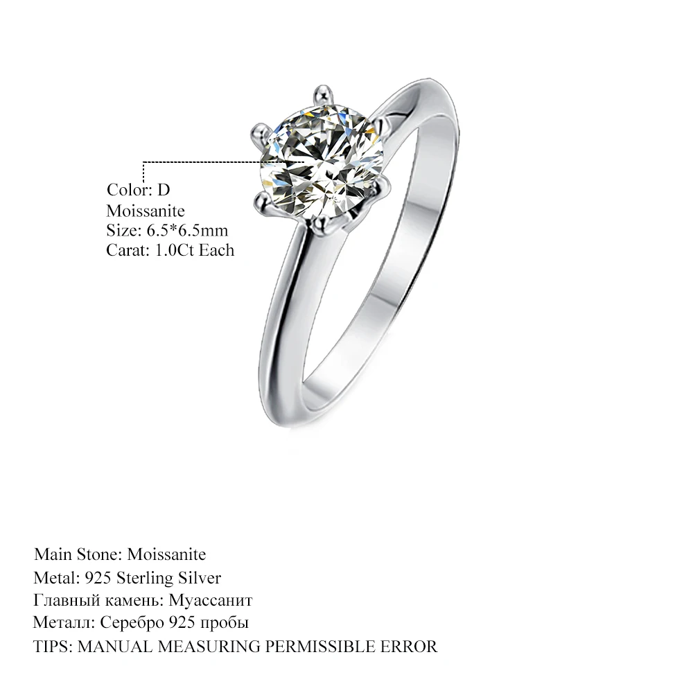 Gem балетки 6 зубец Юбилей вечность Твердые кольца невесты Обручение ювелирные изделия стерлингового серебра 925 Муассанит кольцо Прямая доставка