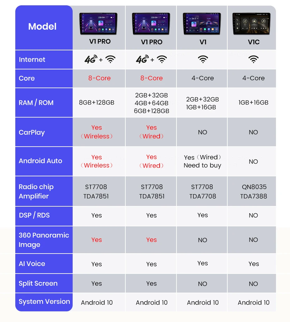 1. Штифт-штифт: Кабель питания Junsun radio' является штифтом для штифта, прост в установке;2. Встроенный Carplay/ Android Auto: Поддержка версии V1Pro, просто используйте кабель телефона, подключите его, стабильный и простой в использовании; (V1 поддерживает только Android Auto, но нужно покупать; V1C не поддерживает)3. Поддержка подголовника: только поддержка версии Junsun V1;