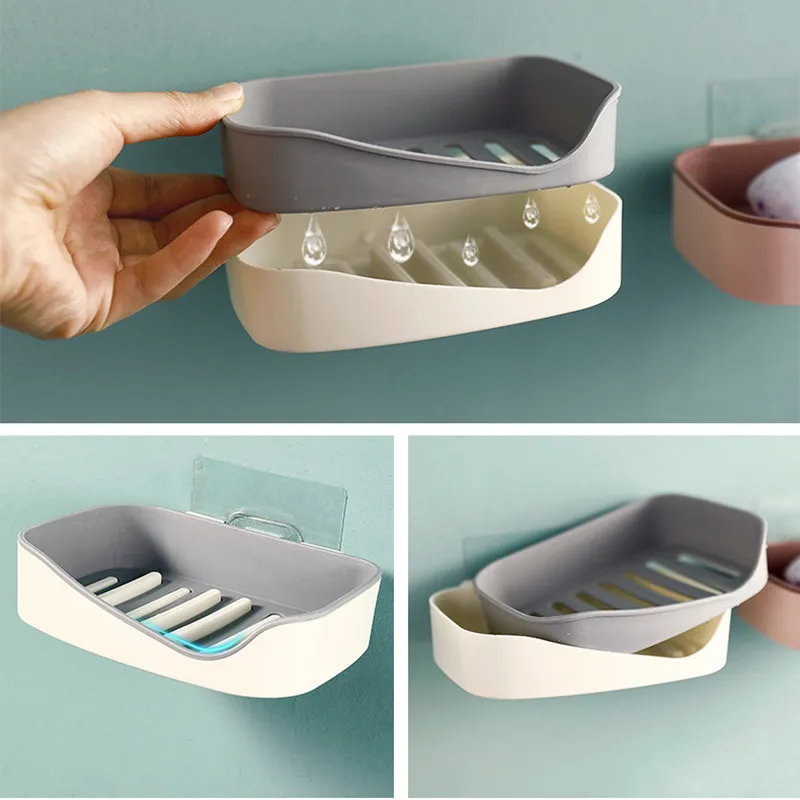 Настенные самоклеющиеся мыльницы, мыльницаБез бурового ящика для хранения с двойным сливом мыла для ванной комнаты