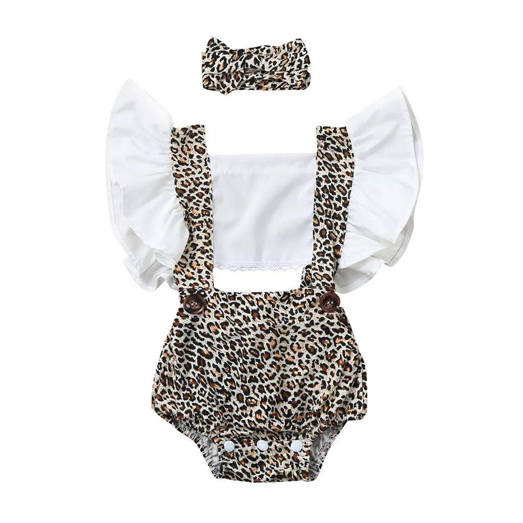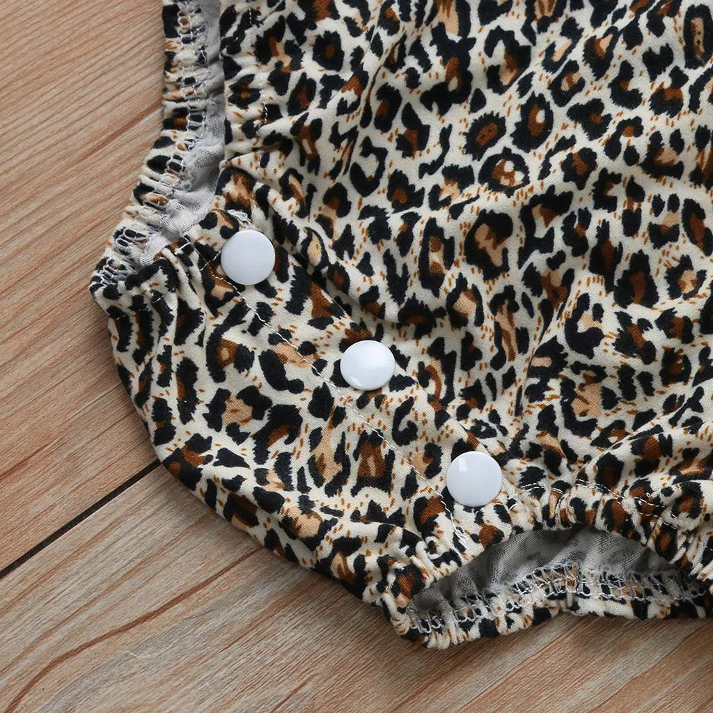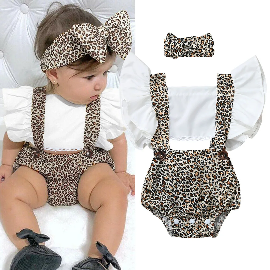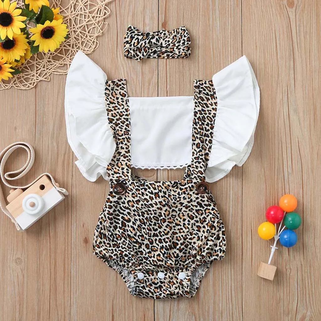 2020 Летний Новый детский комбинезон с рюшами для маленьких девочек, Детский комбинезон с принтом леопарда, Одежда для новорожденных мальчиков, мягкая хлопковая одежда
