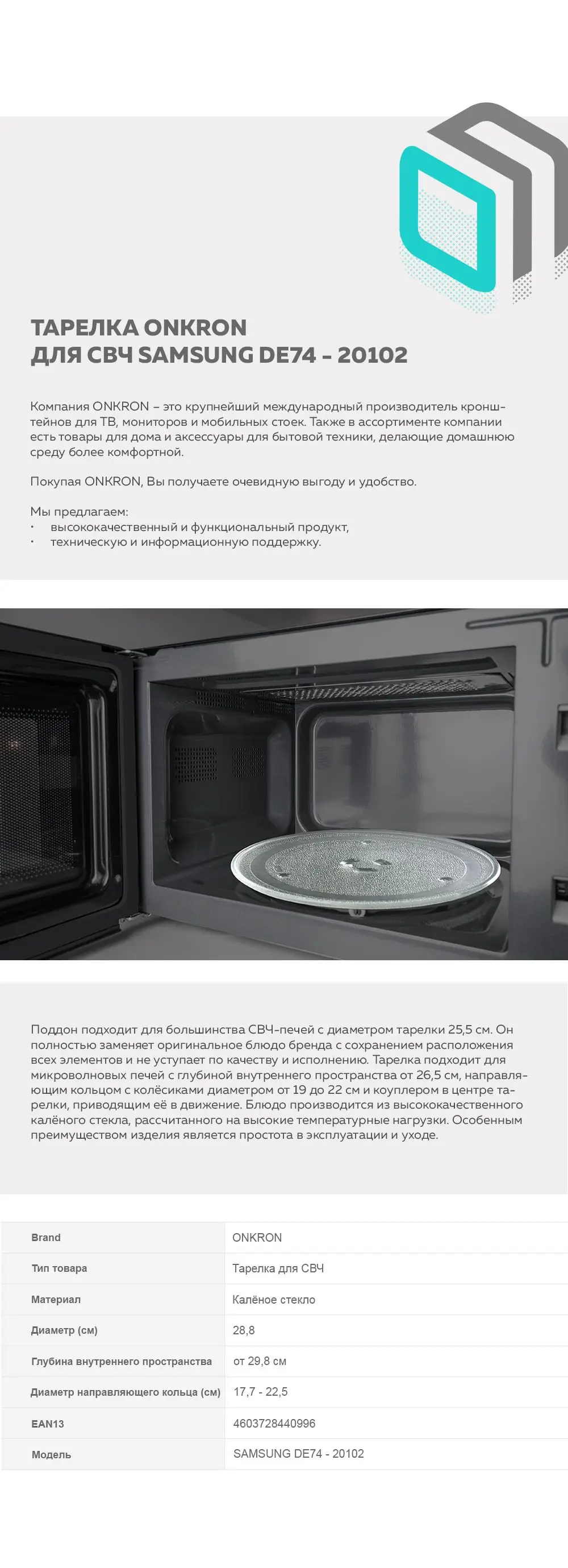 ONKRON тарелка для СВЧ SAMSUNG DE74-20102 28,8 см