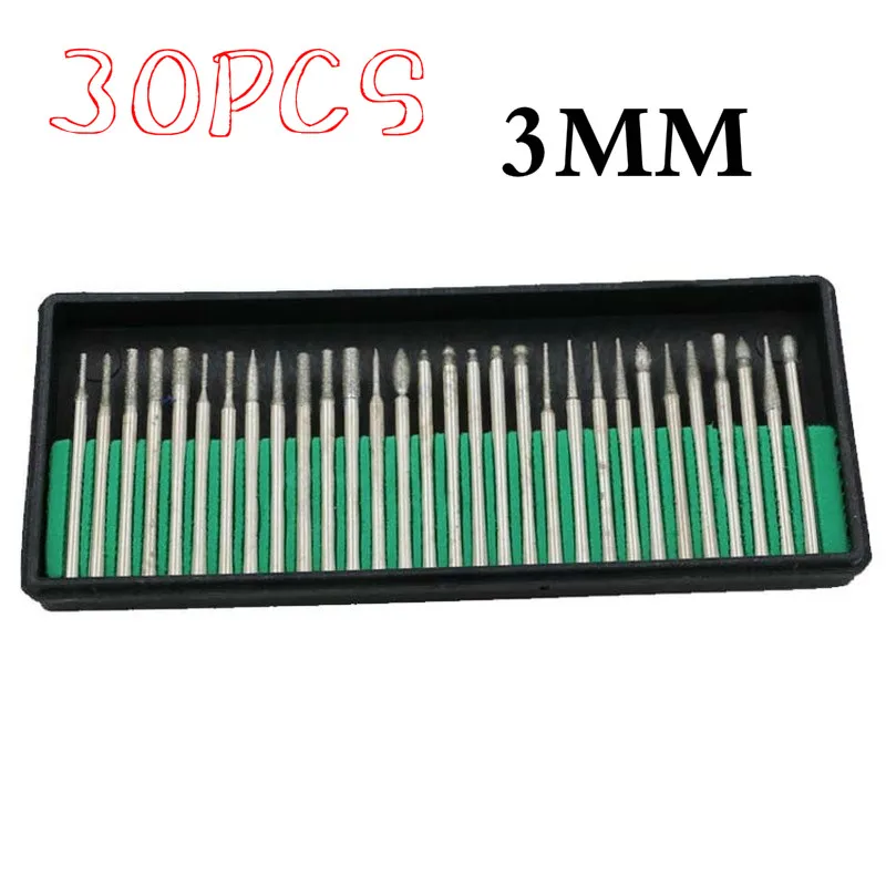 30 шт. 3 мм Мини сверла алмазные боры шлифовальный круг абразивный хвостовик древесина камень гравировка для Dremel электроинструменты аксессуары