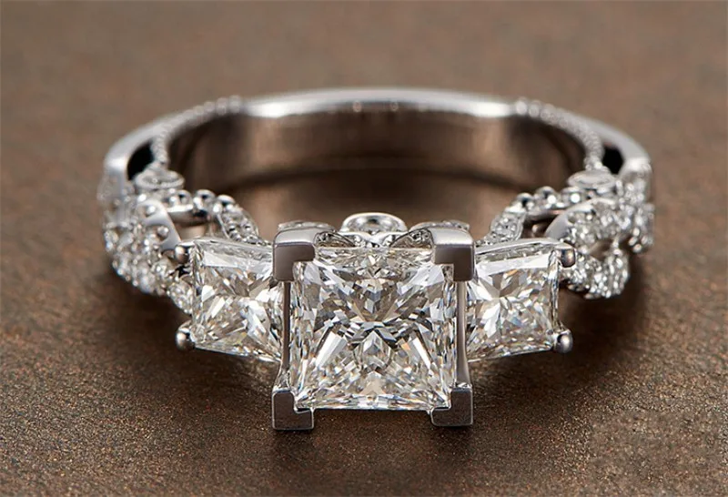 Винтажное кольцо с бриллиантами в стиле принцессы, обручальное кольцо из стерлингового серебра 925 пробы для женщин, ювелирные изделия для свадебвечерние