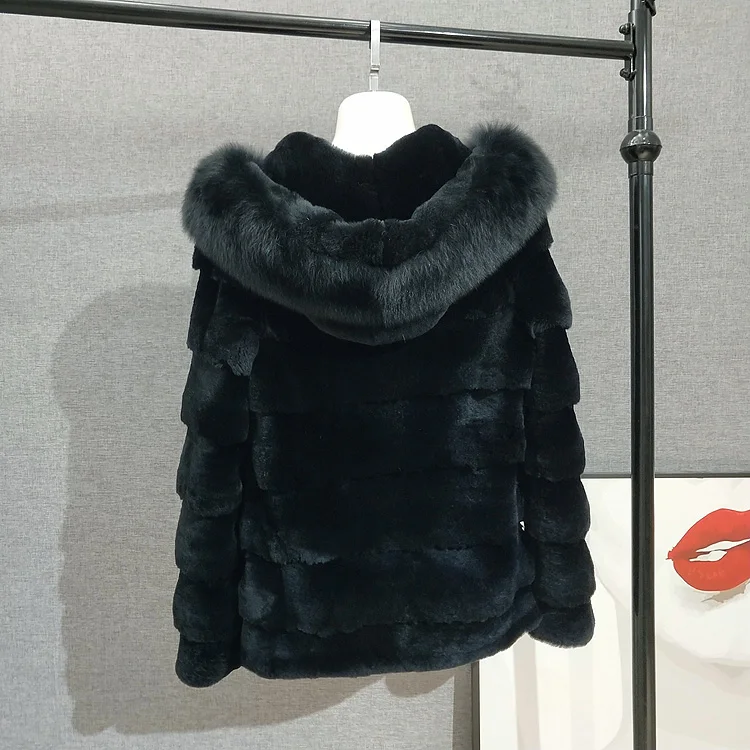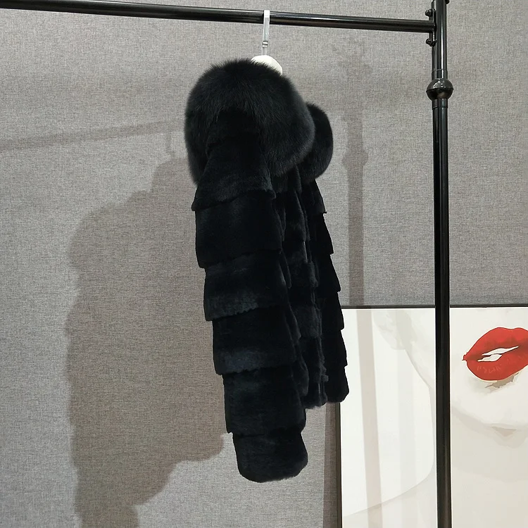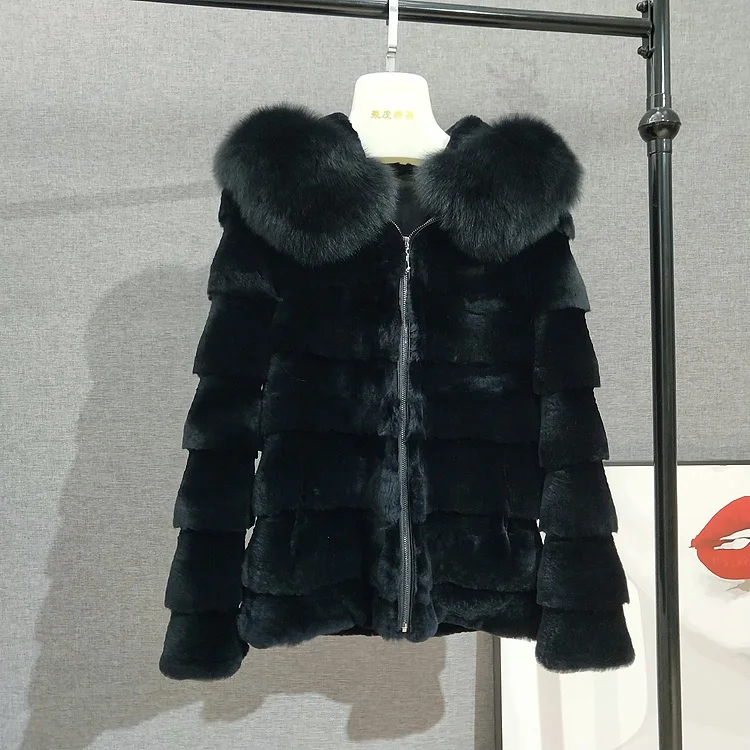 Новинка 2020, роскошный бренд, Женский Настоящий мех кролика, пальто, меховое пальто с капюшоном, длинный стиль, в полоску, Зимняя Толстая Меховая куртка с лисьим воротником