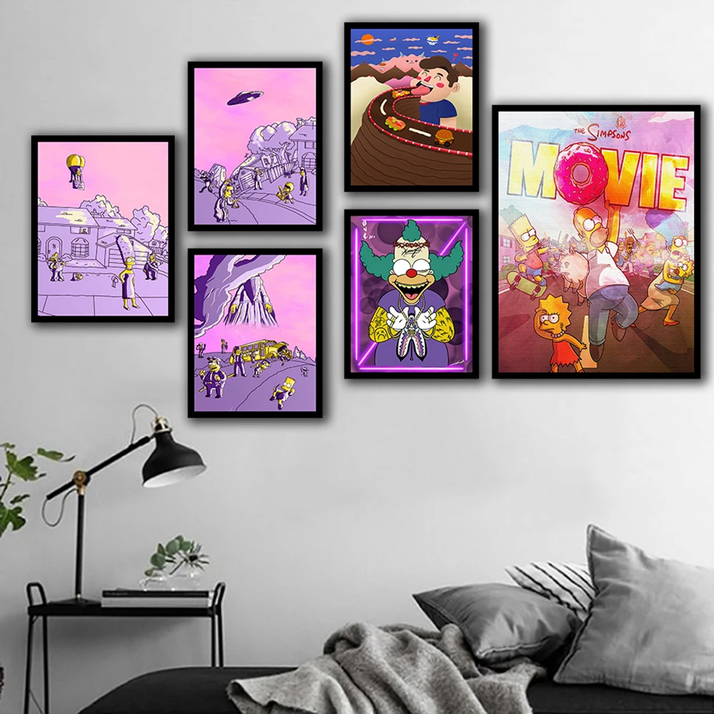 Модульный плакат, Современная печать высокой четкости, настенное искусство, сурреальный юмор, Симпсоны, анимационная серия, Картина на холсте, украшение для дома