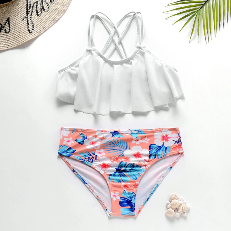 Купальник для девочек-подростков, детский купальник из двух частей, высококачественный купальник для детей, От 3 до 14 лет, 2021