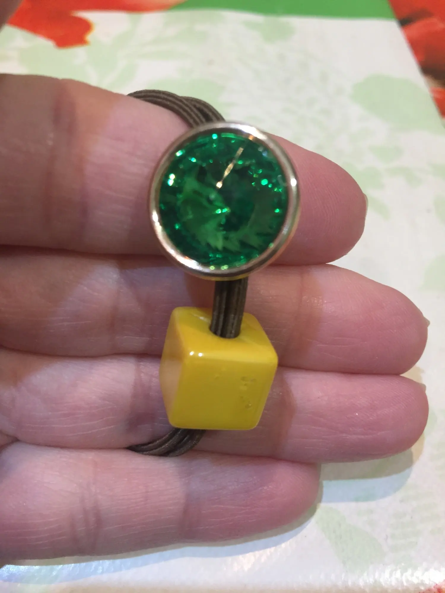 Не знаю с чем это связано, но мне пришли аж 3 штуки одинаковых, заказывала одну резинку , элементы с камнями это пластмасса и камни и основание куда они прилеплены