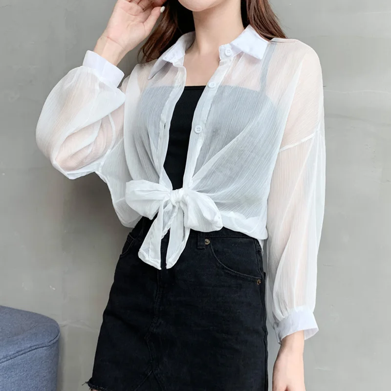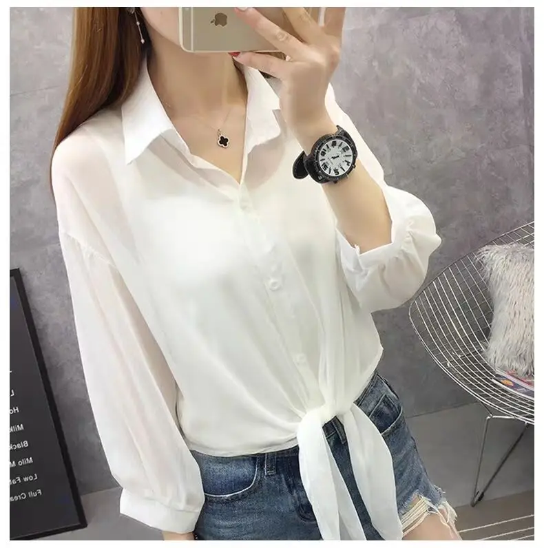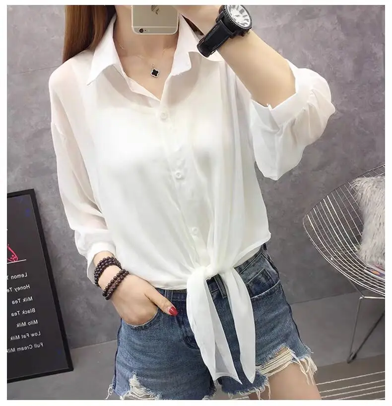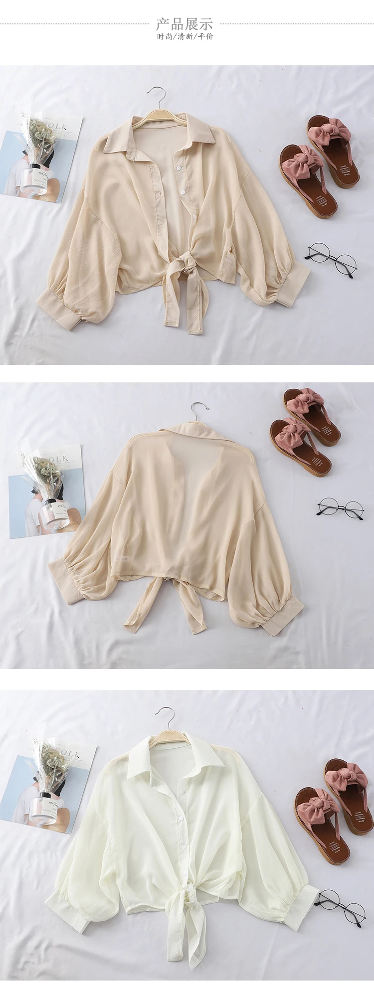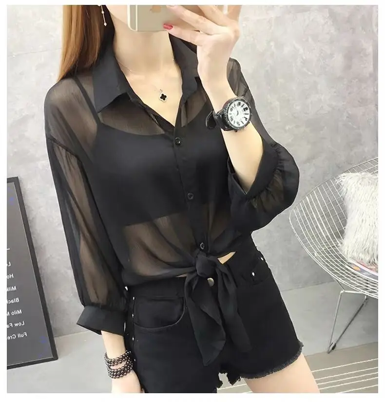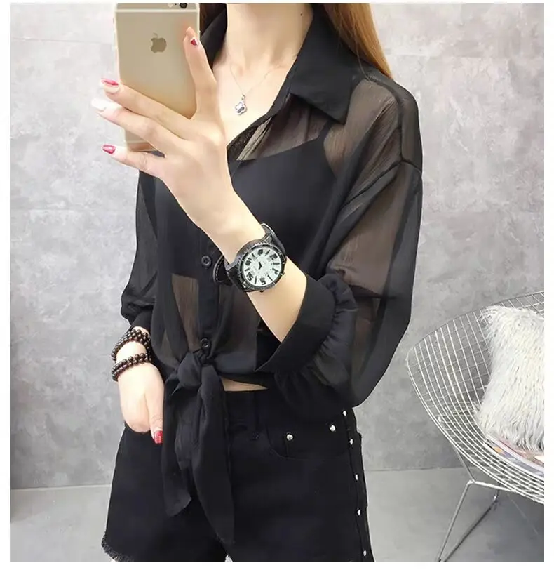 Популярная тонкая Солнцезащитная рубашка, женские рубашки шифоновые...