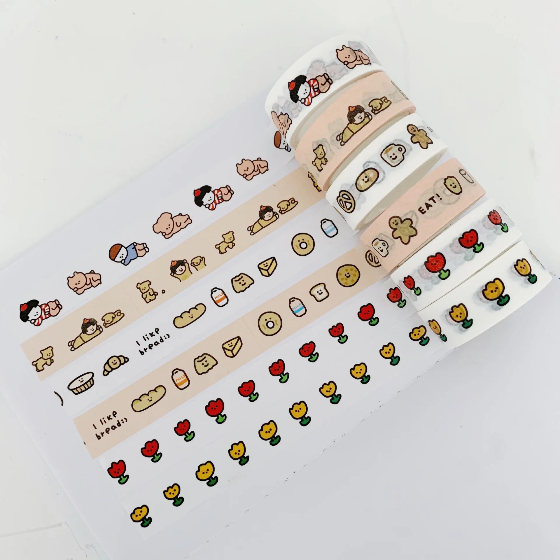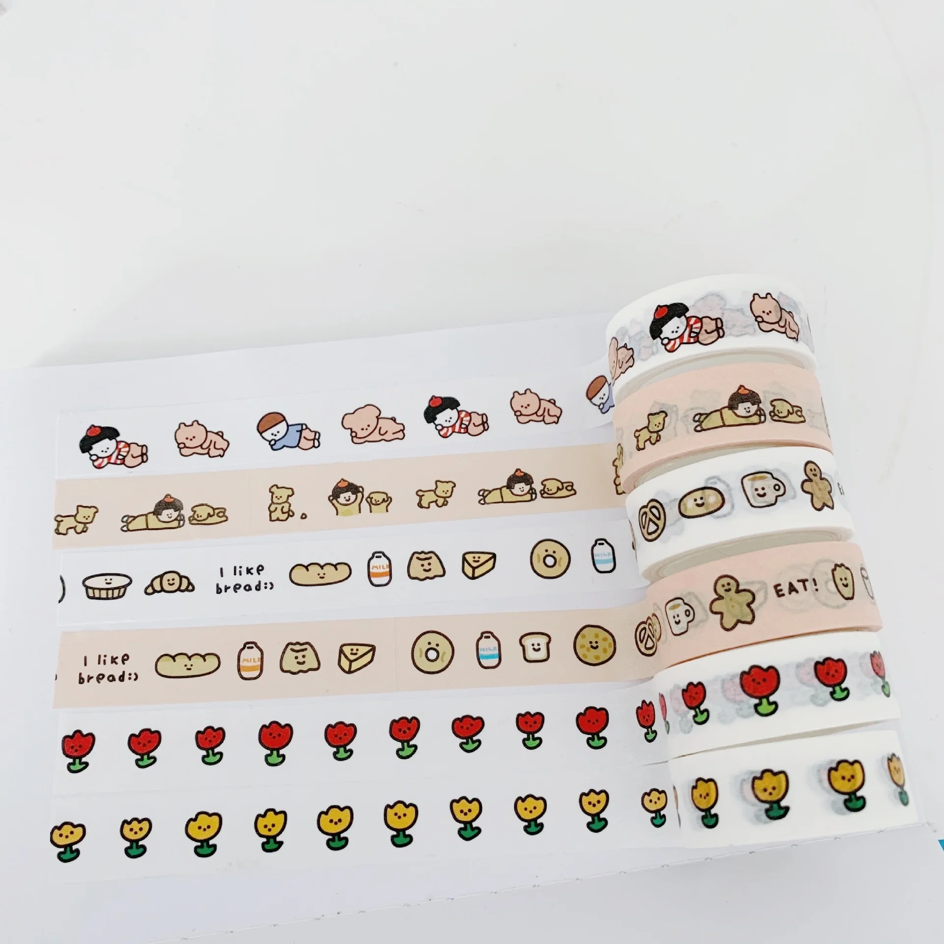 Ins милая девушка хлеб тюльпан васи лента 5 м карты Примечание бумага Мультфильм Креативные этикетки Уплотнительная наклейка декоративные ленты Канцтовары