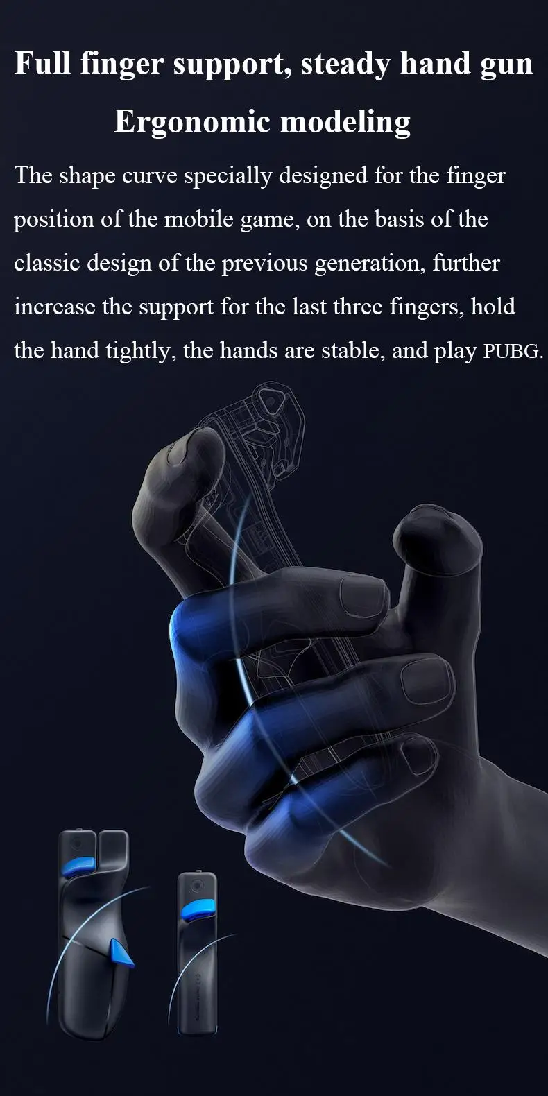 The shape curve specially designed for the finger position of the mobile game, on the basis of the classic design of the previous generation, further increase the support for the last three fingers, hold the hand tightly, the hands are stable, and play PUBG