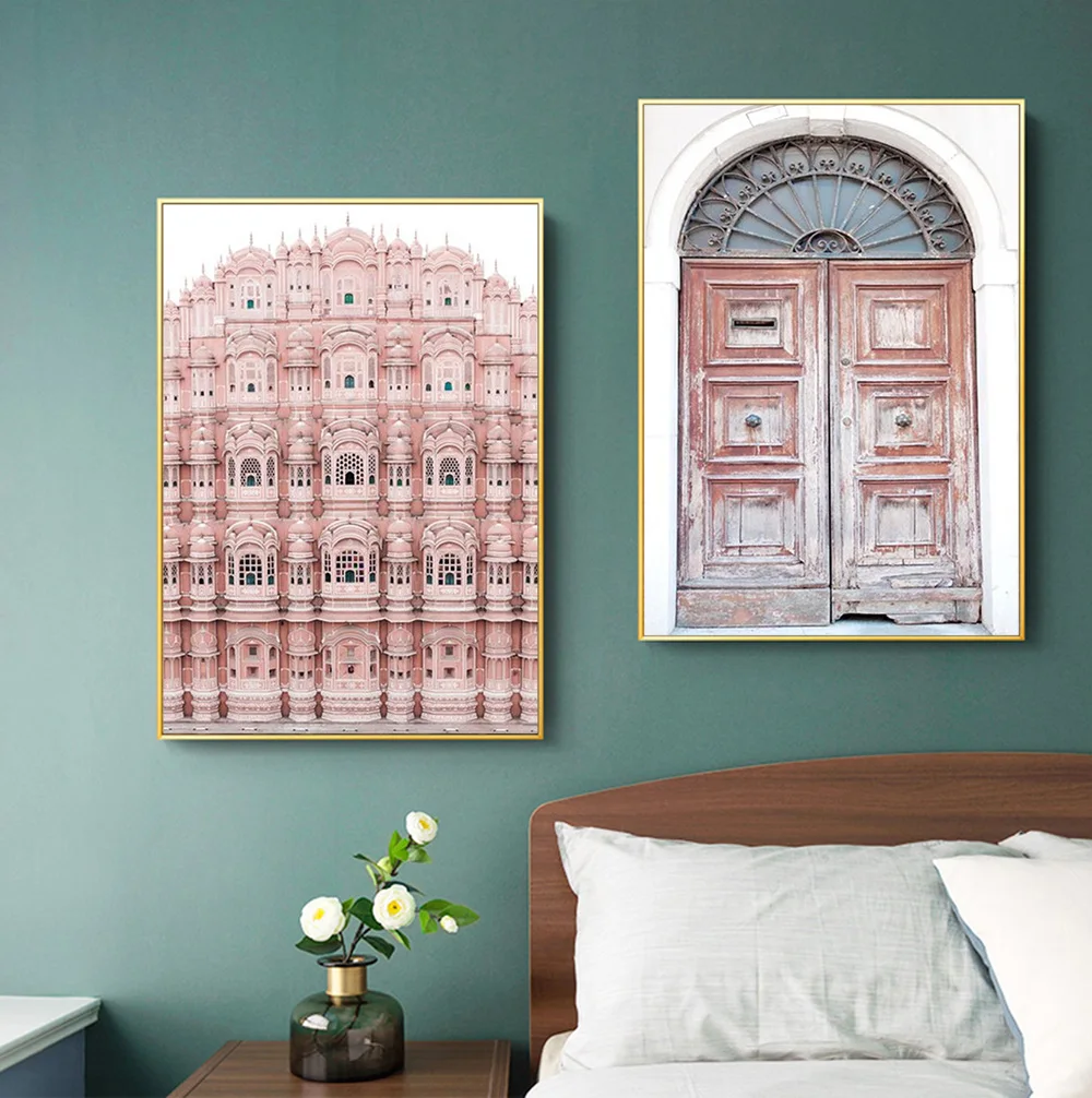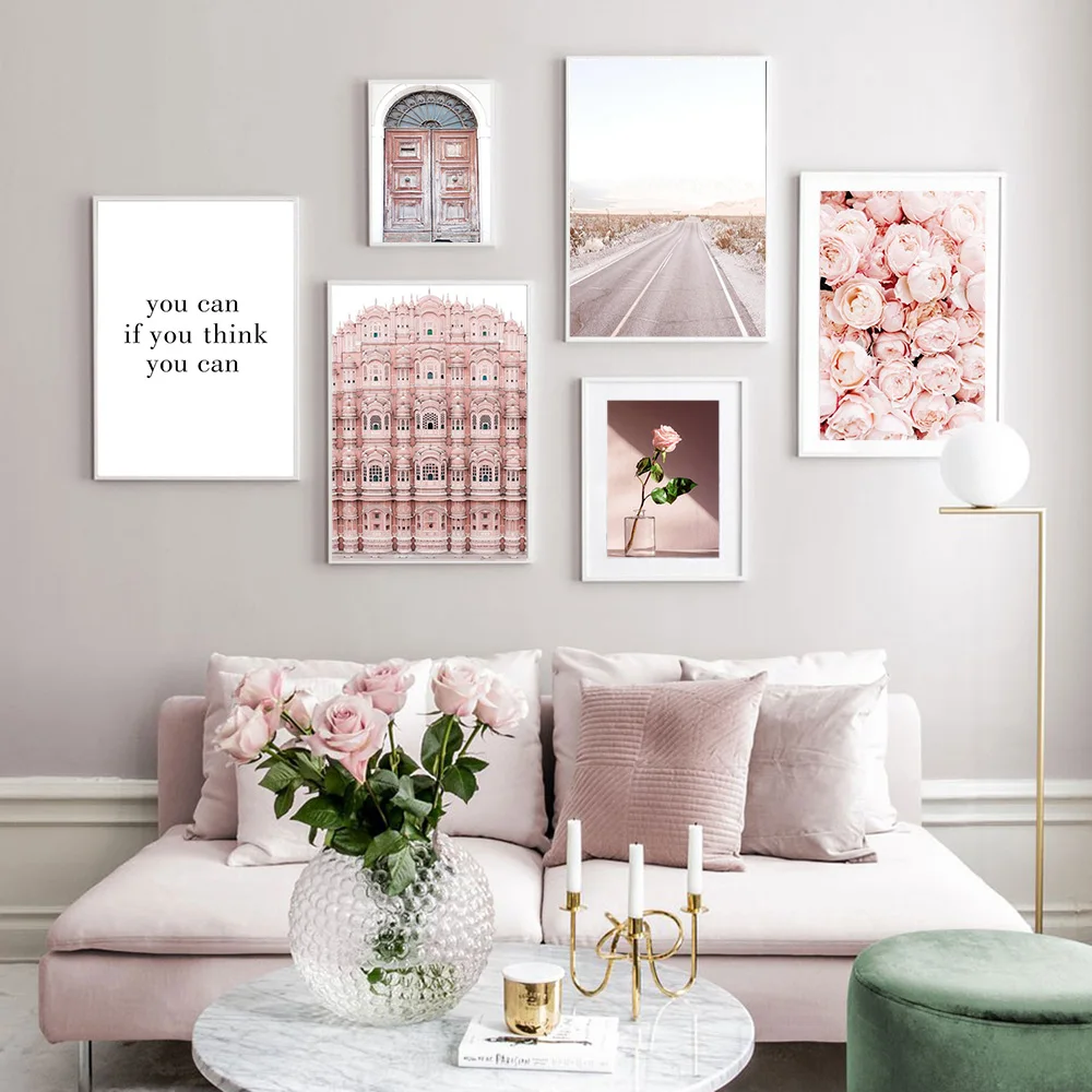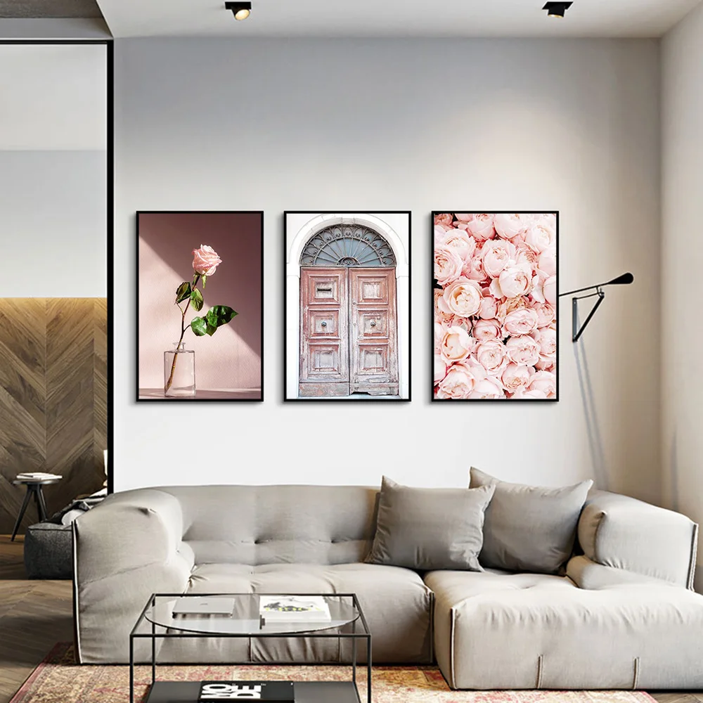 Постер в скандинавском стиле, настенная Картина на холсте, роза, цветок, дорожка, строительство дверей, плакаты и принты, настенные картины для декора гостиной