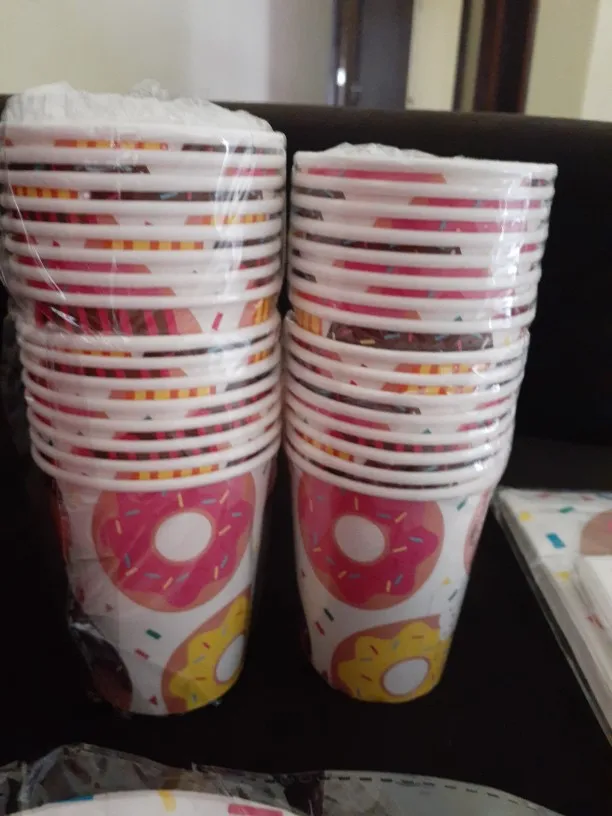 Пончик баннер Бумага чашки салфетки пластины с днем рождения Юбилей Baby Shower Коробка Конфет Украшение для бара и вечеринки в форме пончика для вечеринок