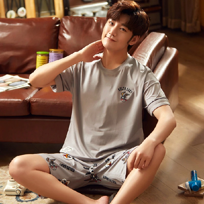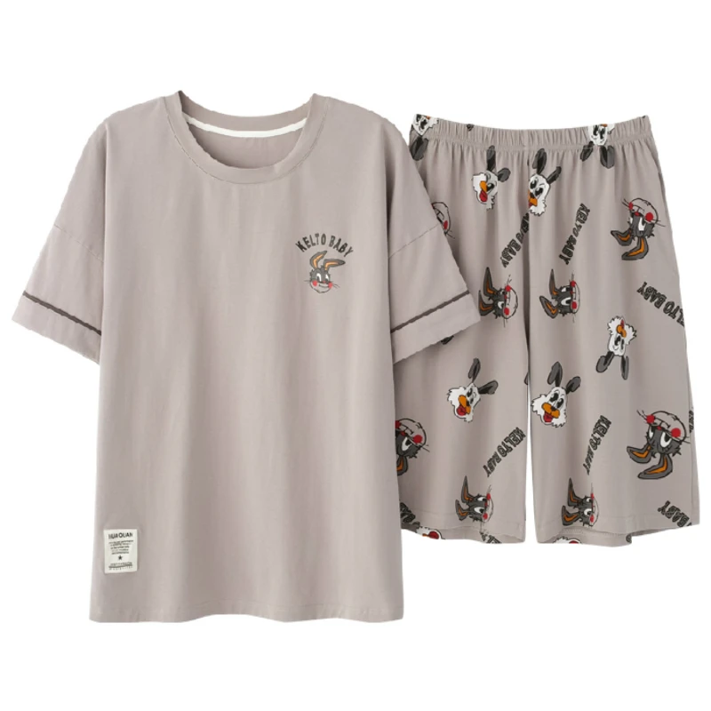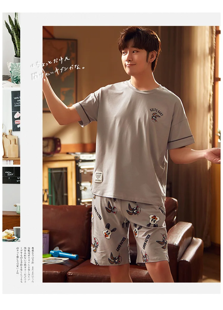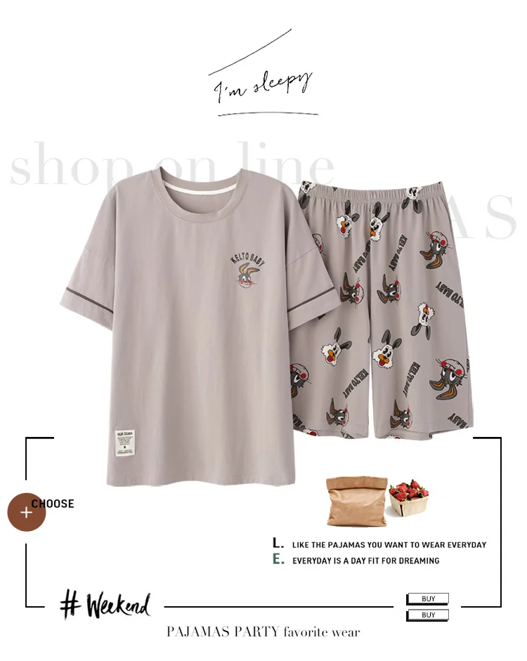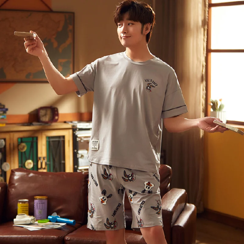 2020 летний мужской пижамный комплект с принтом кролика собаки одежда для сна Женская 100% хлопковая ночная рубашка с коротким рукавом Мужская Ночная сорочка