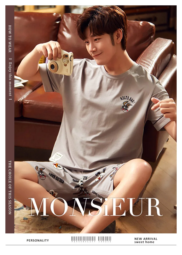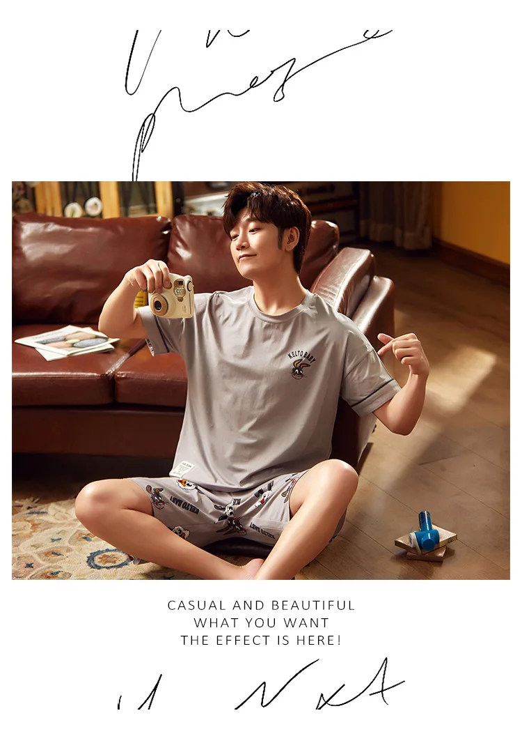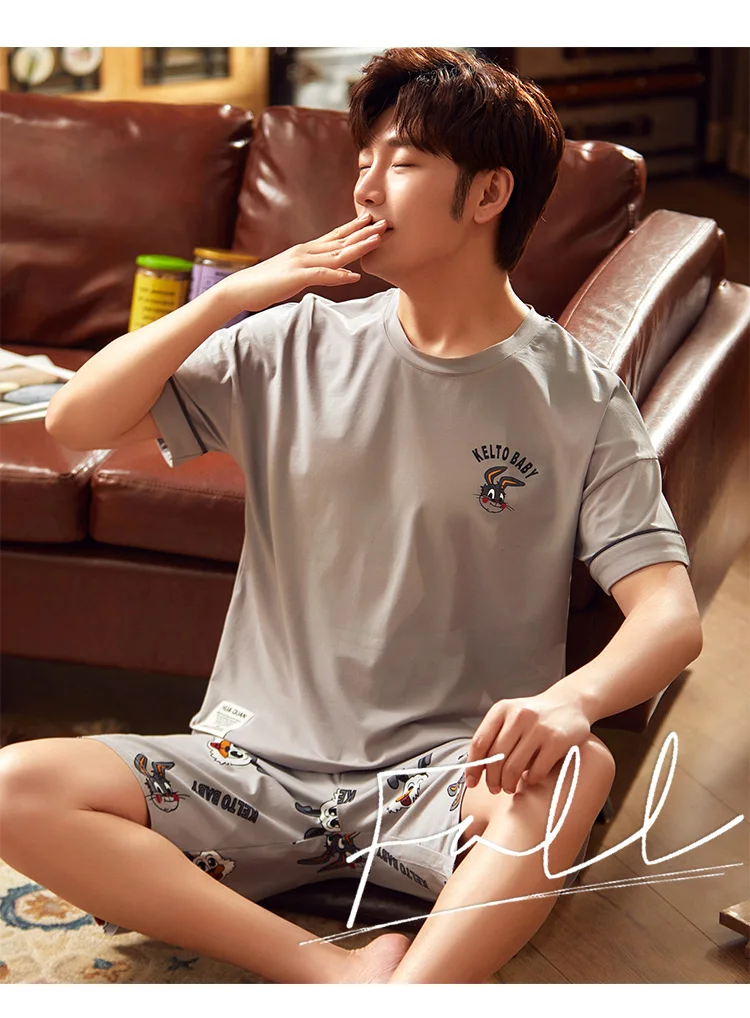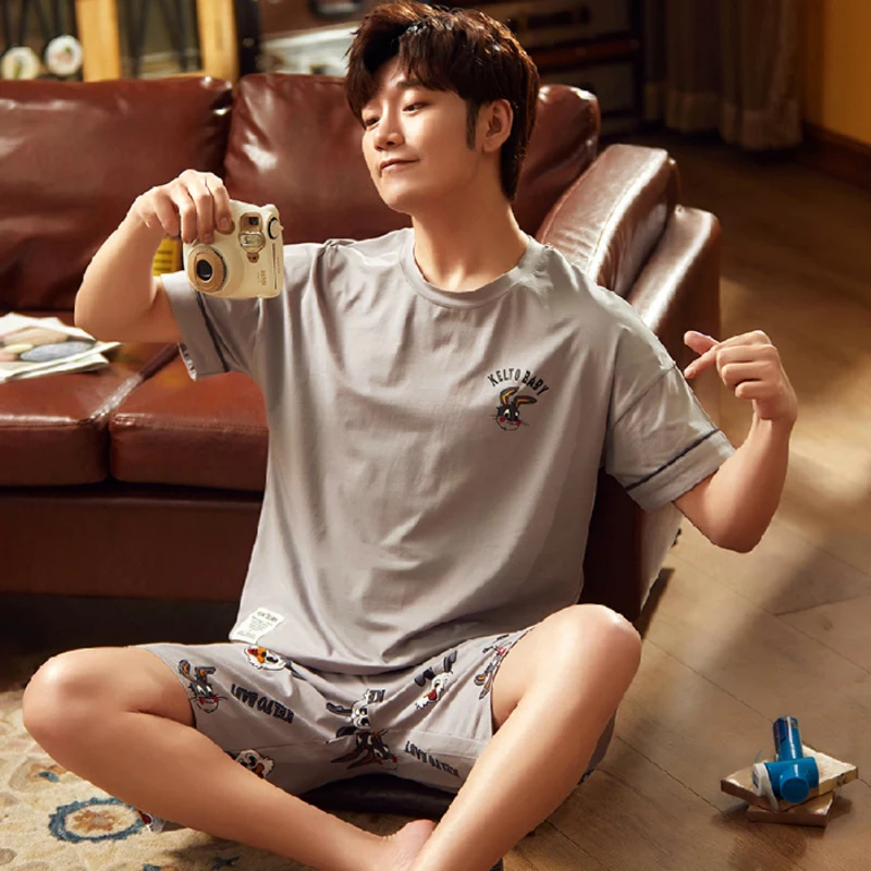 2020 летний мужской пижамный комплект с принтом кролика собаки одежда для сна Женская 100% хлопковая ночная рубашка с коротким рукавом Мужская Ночная сорочка