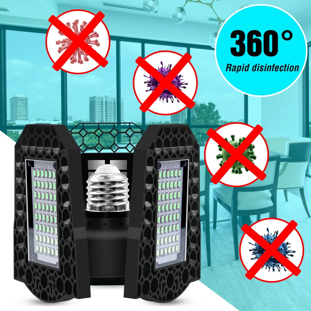Бактерицидная UVC Светодиодная лампа 220 В ультрафиолетосветодиодный светодиодсветильник лампа для гаража 80 Вт 60 Вт 40 Вт E27 деформирусветодиодный светодиодная УФ-лампа для дезинфекции 110 В