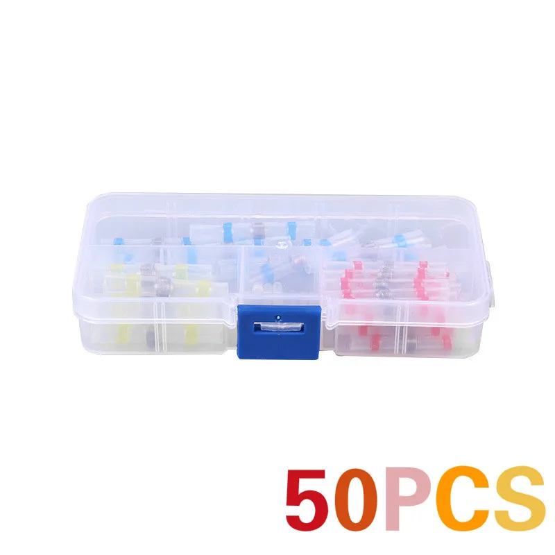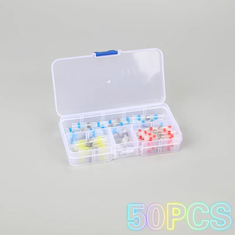 50 шт. термоусадочная трубка клеммы для спайки электрическая проволока изолированные стыковые соединители комплект Водонепроницаемая трубка для припоя 4 размера