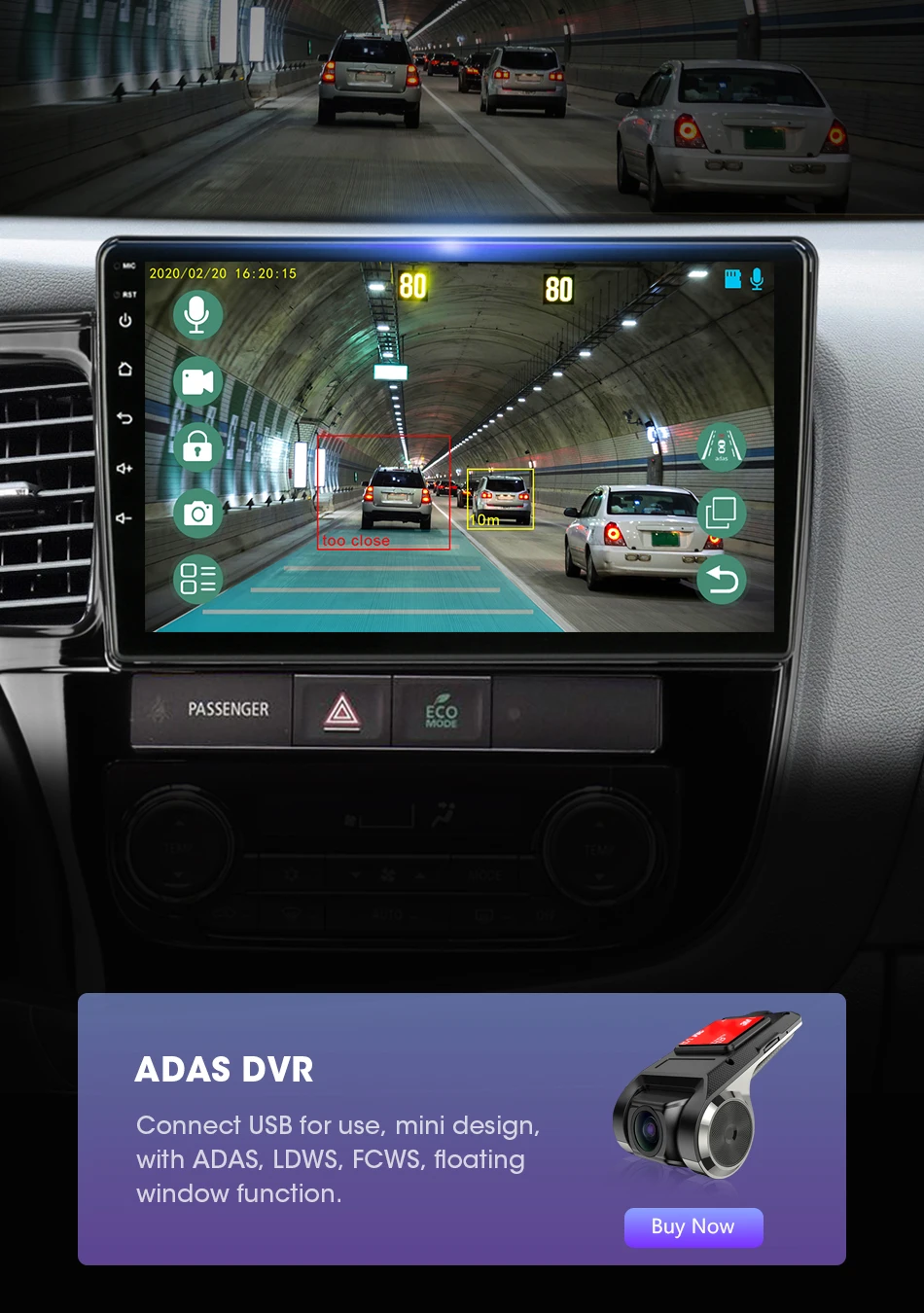 Поддерживает подключение к видеорегистраторУ ADAS. ADAS DVR имеет несколько встроенных ассистивных технологий вождения, вставляя высококачественную карту памяти TF для записи каждого момента вашего вождения.