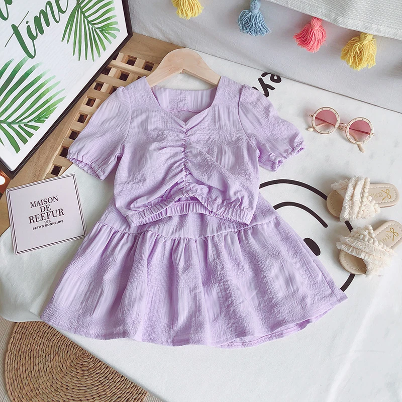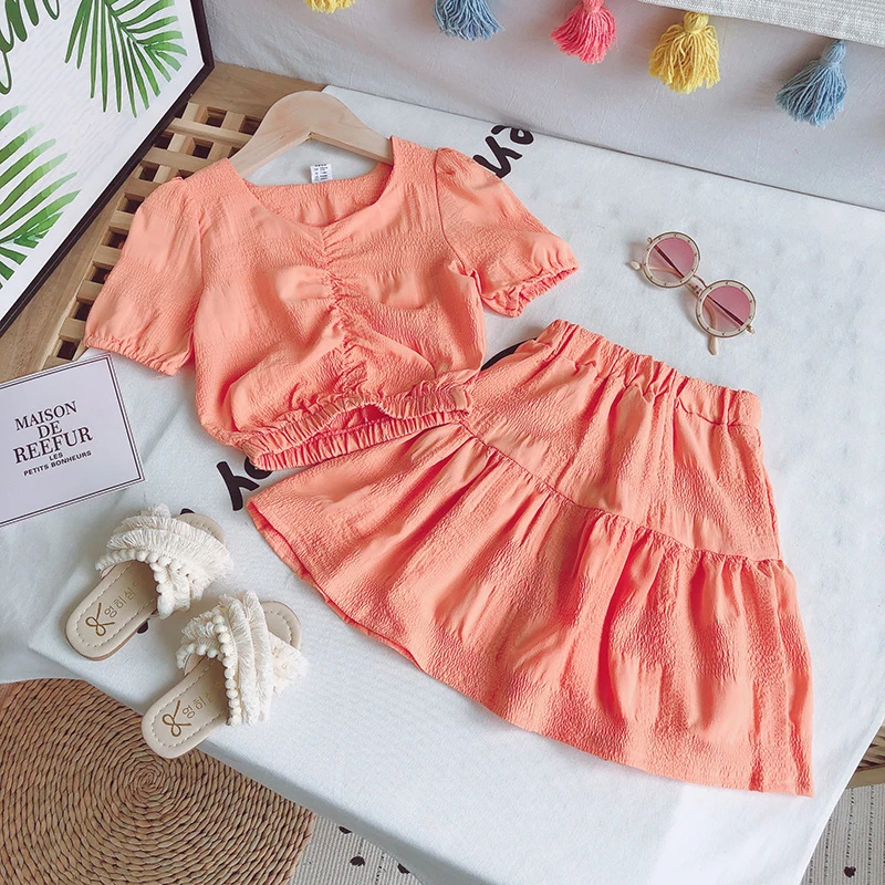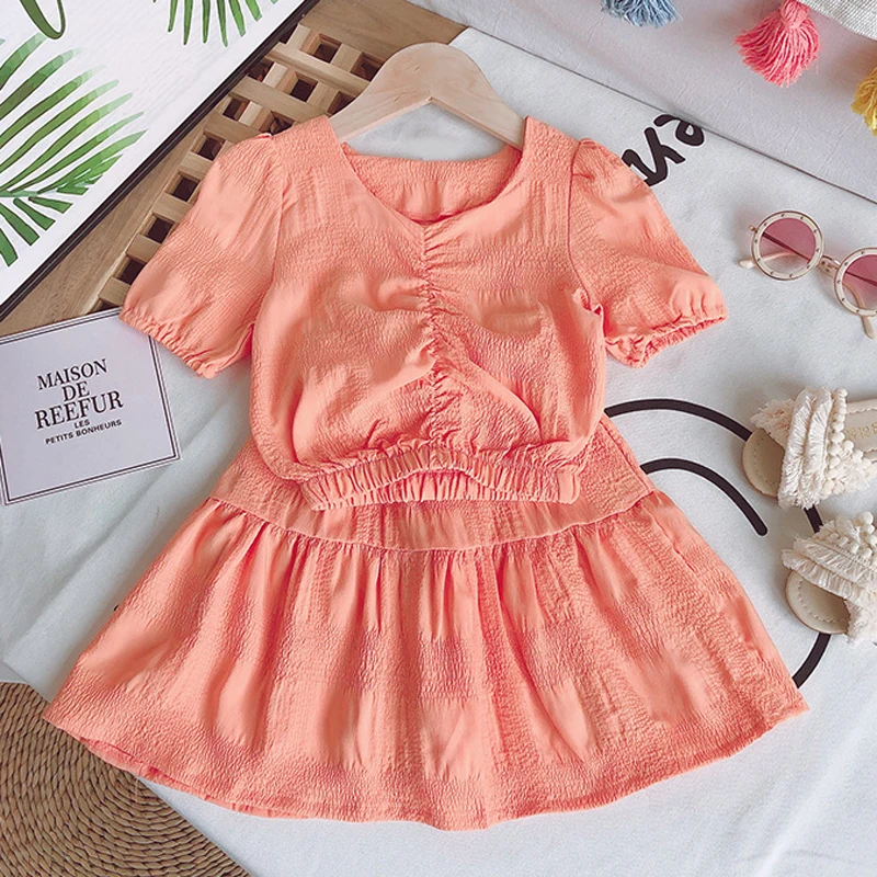 Летние комплекты одежды для девочек Корейская шифоновая футболка с короткими рукавами + юбка с высокой талией комплект одежды из 2 предметов для маленьких детей Одежда для детей