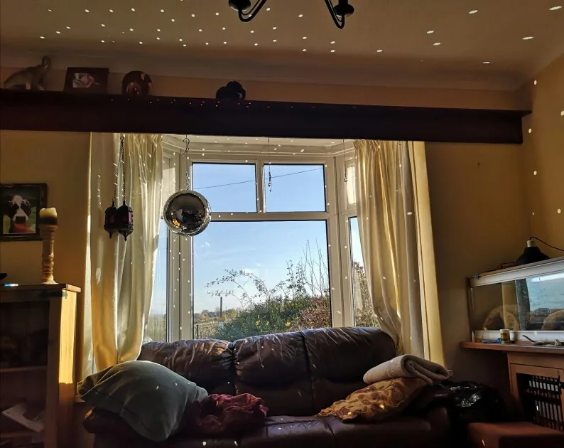 Мне это нравится! Я купил это как Рождественское украшение, но могу оставить его на весь год. Я установить его в корзине, и когда солнце ударит его, вся комната загорается в небольших отражениях от спины. Это очень приятно.