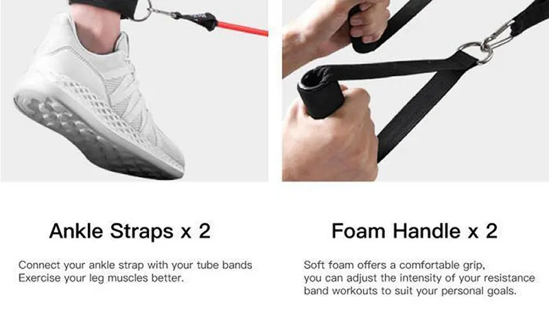 Регулируемые уровни сопротивления: каждый диапазон отличается по цвету и уровням сопротивления: желтый-10 фунтов, красный-15 фунтов, синий-20 фунтов, зеленый-25 фунтов, черный-30 фунтов, С общим весом сопротивления 75lbs. Вы можете настроить интенсивность натяжения для достижения личных целей, применяя одну ленту или комбинируя несколько полос, идеально подходит для начинающих или профессионалов, мужчин, женщин, подростков или детей. Упражнения и реабилитация: не только для ежедневной тренировки фитнеса и сжигания жира, эти полосы также широко используются для реабилитации людей, страдающих от травм ног, колена и спины, что помогает для восстановления от MCL, ACL, замена колена, коленная чашечка, Идеальный выбор для женщин, которые хотят сохранить свое тело в форме после беременности и родов. Технические характеристики: Длина/педикюра задняя часть: около 1,2 м/4ft Посылка Содержание:5 резинок сопротивления, 1 якорь для двери, 1 сумка для переноски, 2 ручки с пенопластом. 2 лямки для лодыжки
