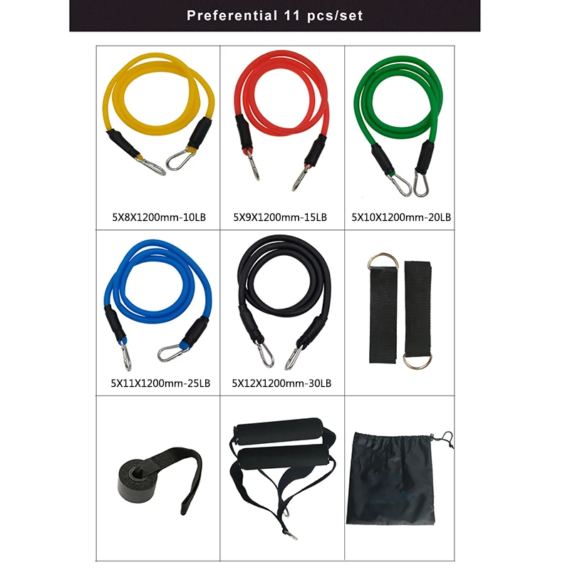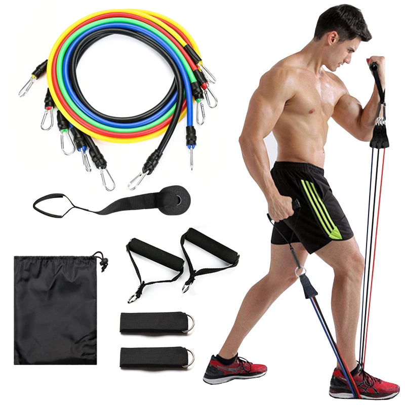 11 шт., Набор резинок для тренировок, фитнеса, эластичных лент для йоги, спортивного тренажерного зала, оборудование для дома, латексная Тяговая веревка, упражнения