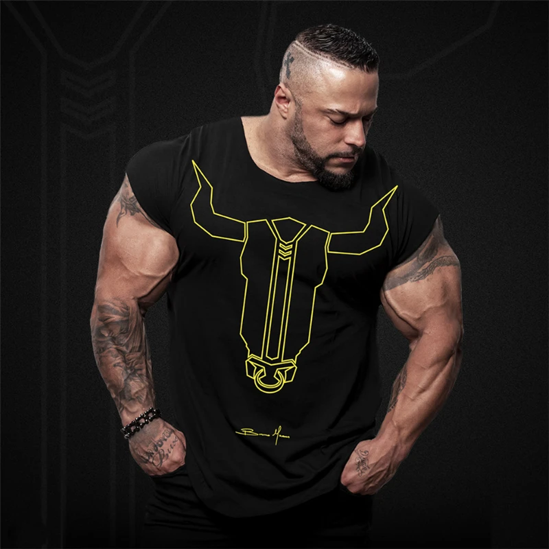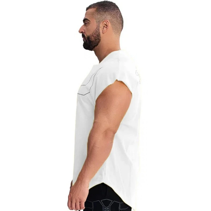 Модная мужская футболка без рукавов для фитнеса, бодибилдинга, мужская хлопковая майка для фитнеса, брендовая мужская рубашка
