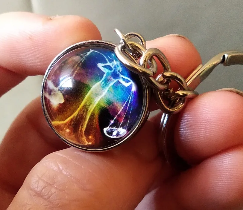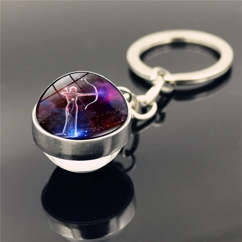 Брелок для ключей со стеклянным шаром, со знаком зодиака, 12, брелок для ключей Созвездие