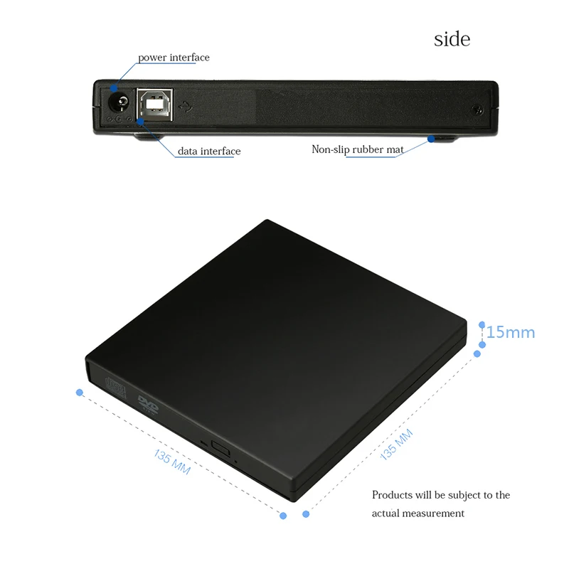 Внешний Dvd привод Оптический привод Usb 2,0 Cd Rom Проигрыватель Cd-Rw горелки Писатель ридер рекордер портативный для ноутбука Windows Pc (черный)
