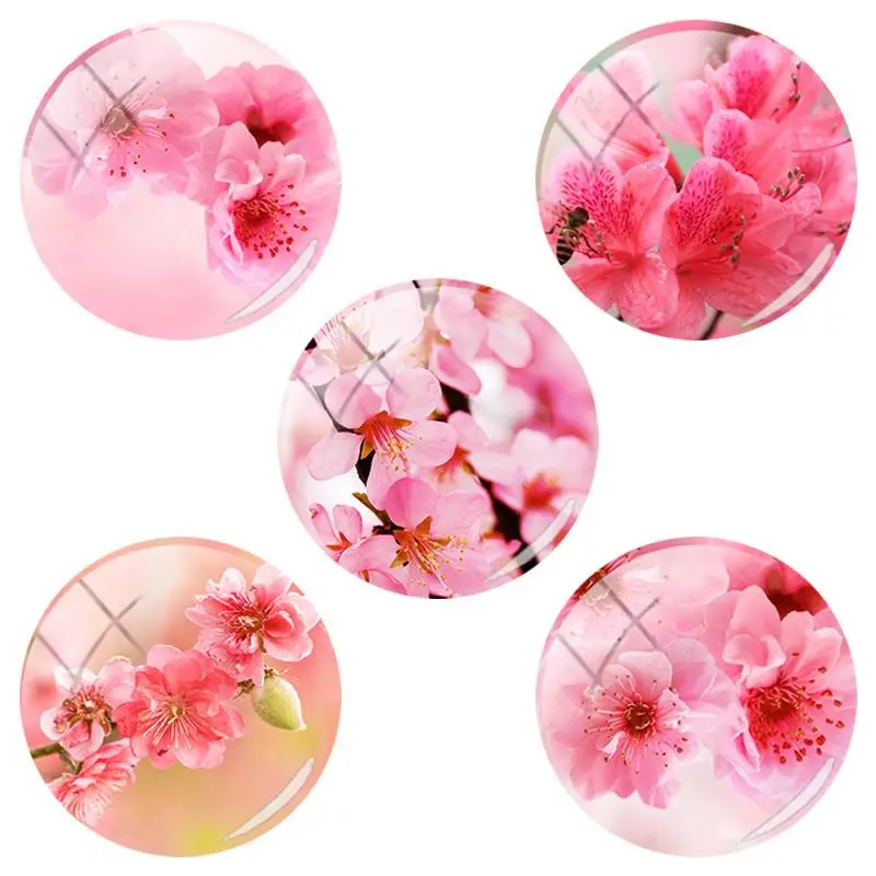 Titlemixed peach flower Round Glass Cabochon Jewelry Findings