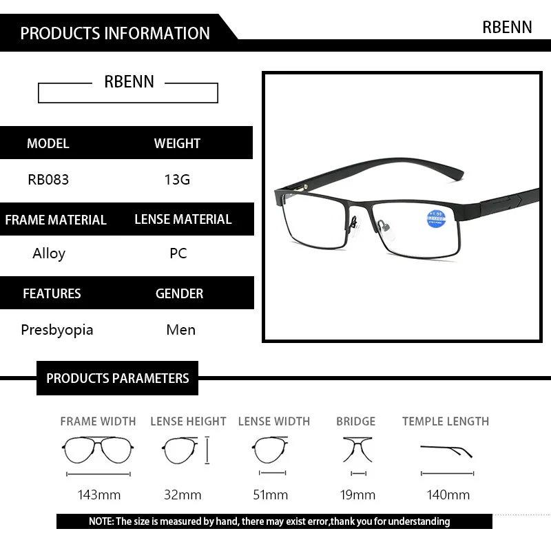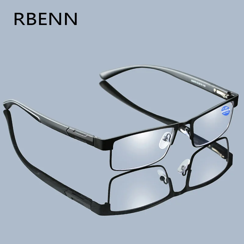 Очки для чтения RBENN мужские, с защитой от синего светильник, с линзами CR-39, с зеленым покрытием, в металлической оправе, + 0, 1,75, 2,25