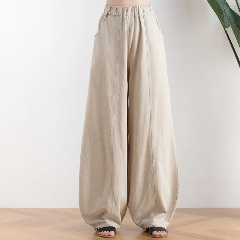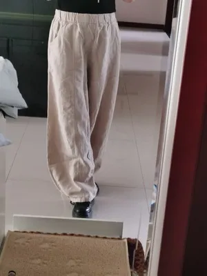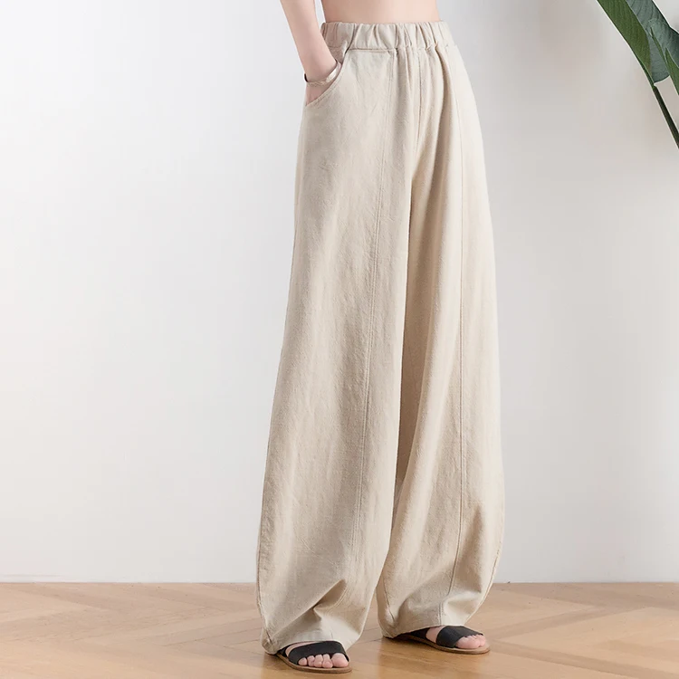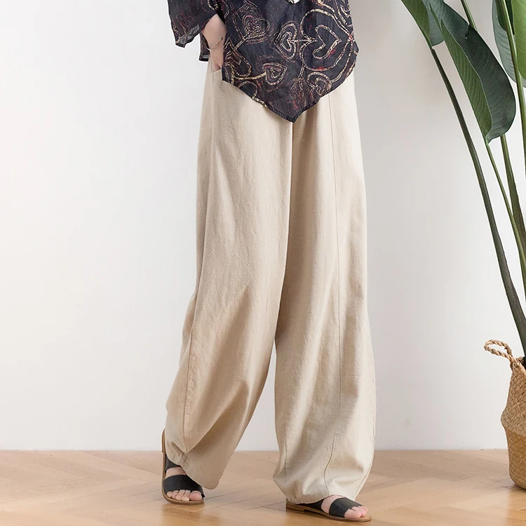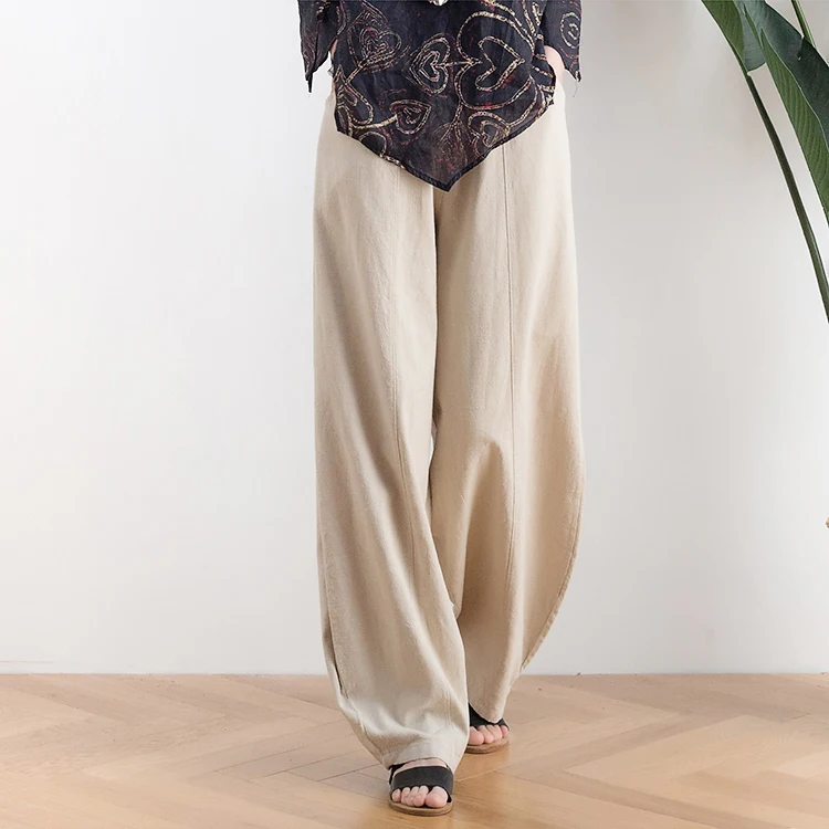 Женские льняные шаровары, зимние уютные, с высокой талией, свободные, 2020, размера плюс