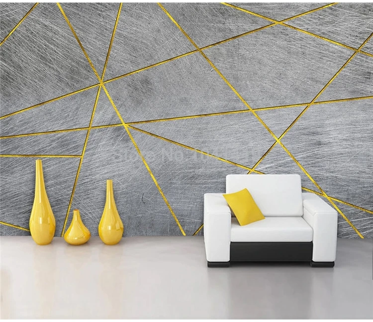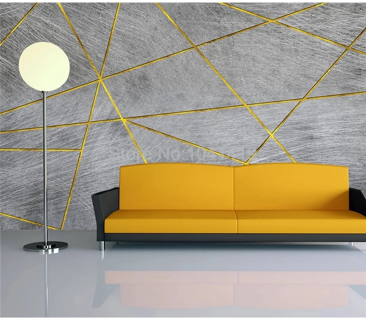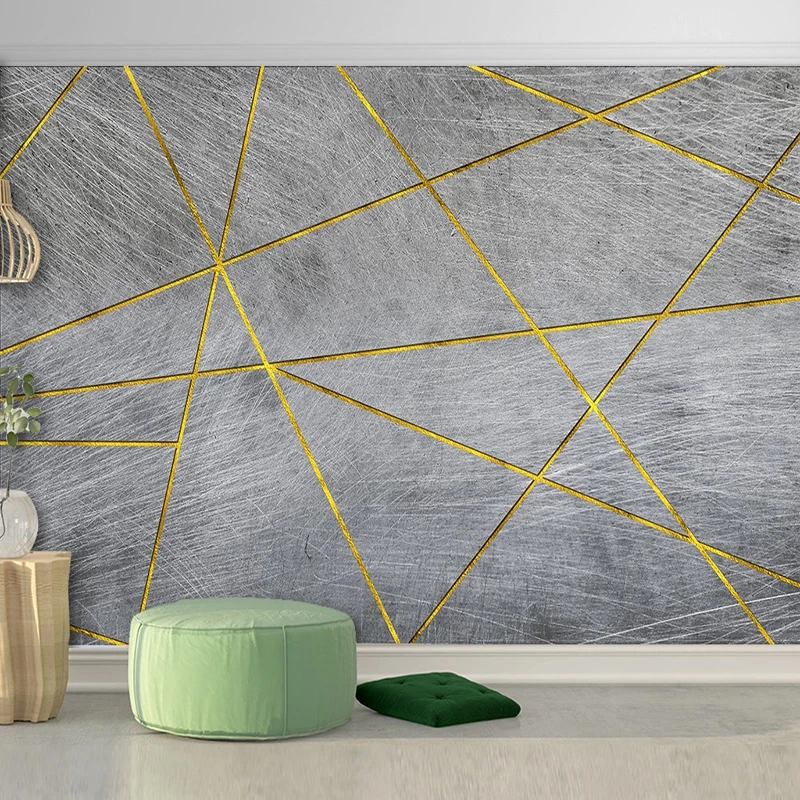 Настенные обои любого размера на заказ, 3D абстрактные обои с золотыми линиями серого цемента геометрической формы для гостиной, спальни, ретро