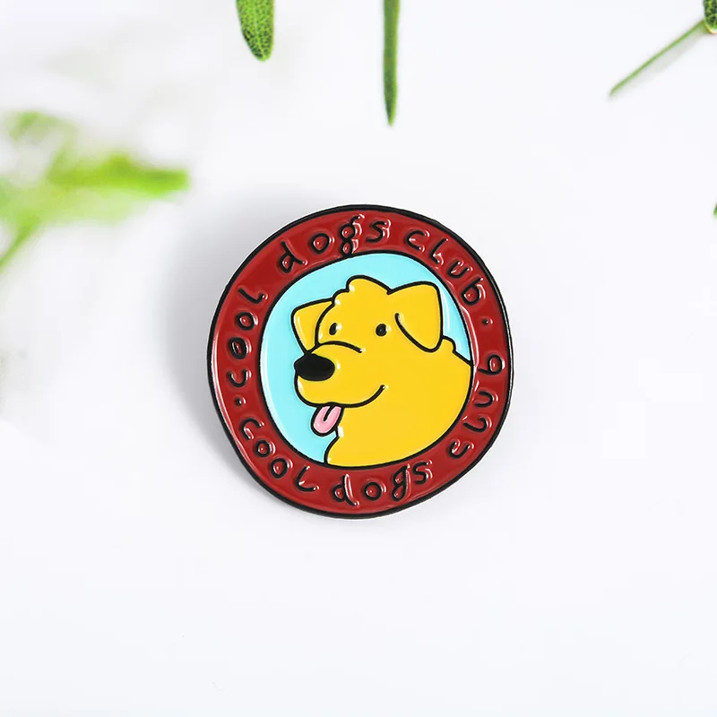Стильные эмалированные броши для клуба собак, оптовая продажа, милая маленькая собачка, Круглый Сплав, рюкзак с нашивками, рубашка, воротник, ювелирные изделия, булавки