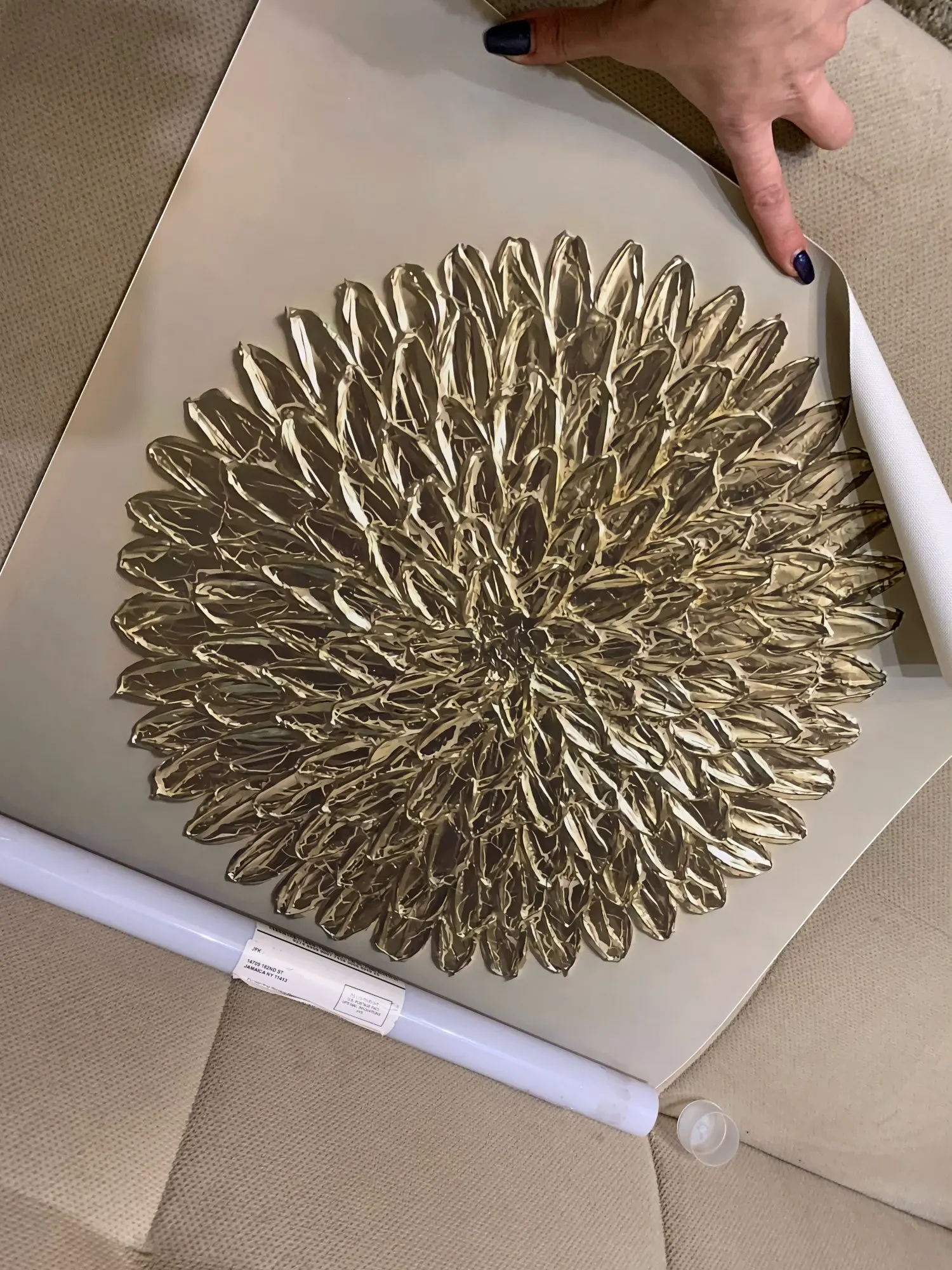 Дополняю отзыв, мой товар потерялся на пути, с продавцом вышла на связь, поняла что на пути были неполадки, и только только товар дошел до меня, правда не золотистого оттенка картина, но очень качественная, я еще заказала, думаю больше проблем не будет, спасибо продавцу
