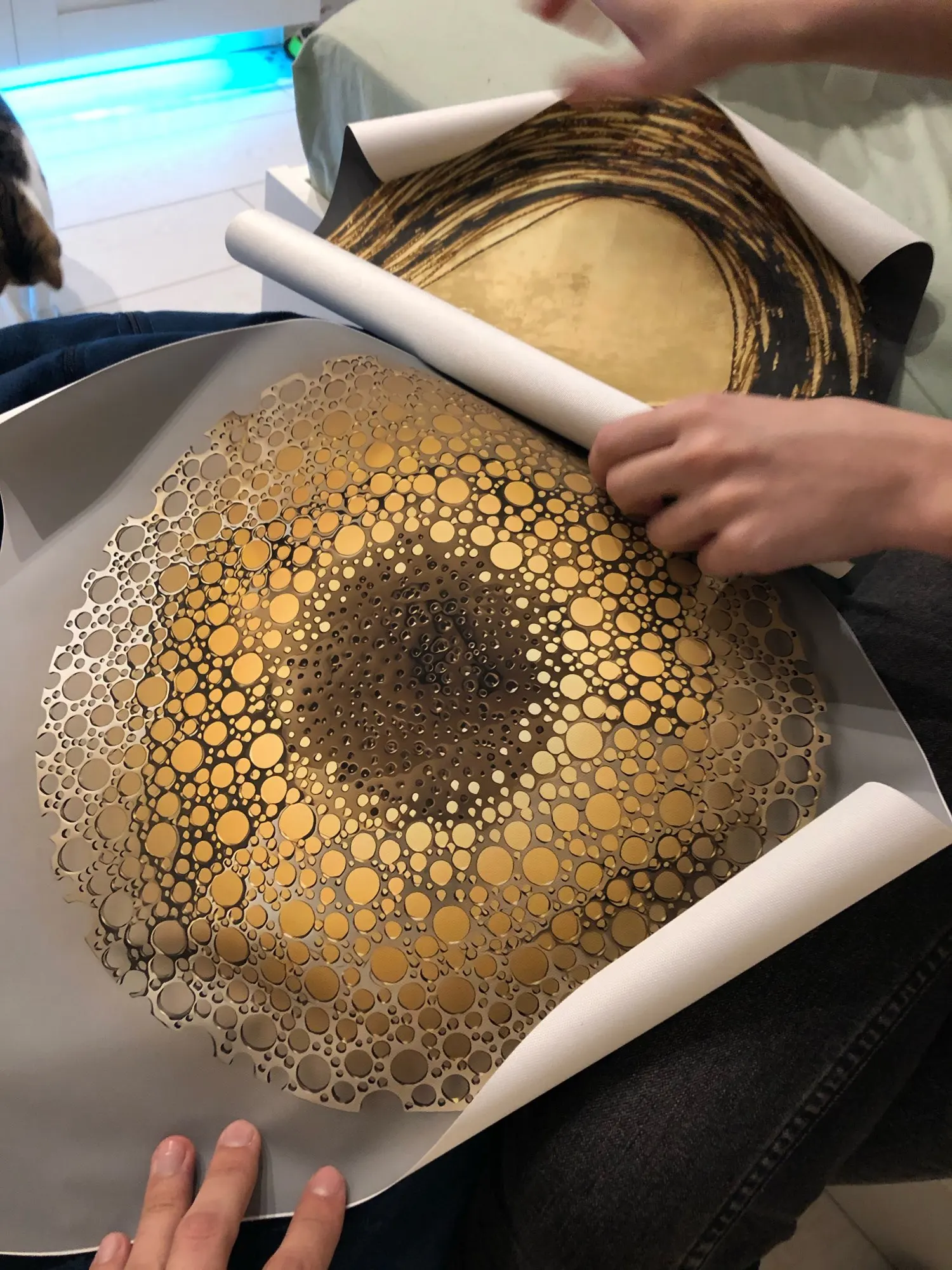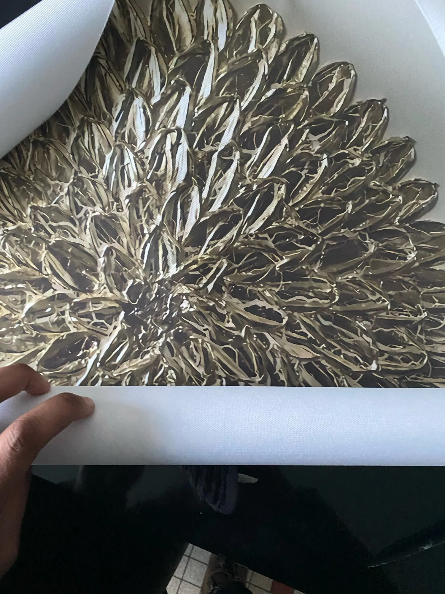 Картина маленькая на подрамник не натянуть, на фото кажется что она с золотом, или перламутром на самом деле такого нет, знала бы не покупала!!