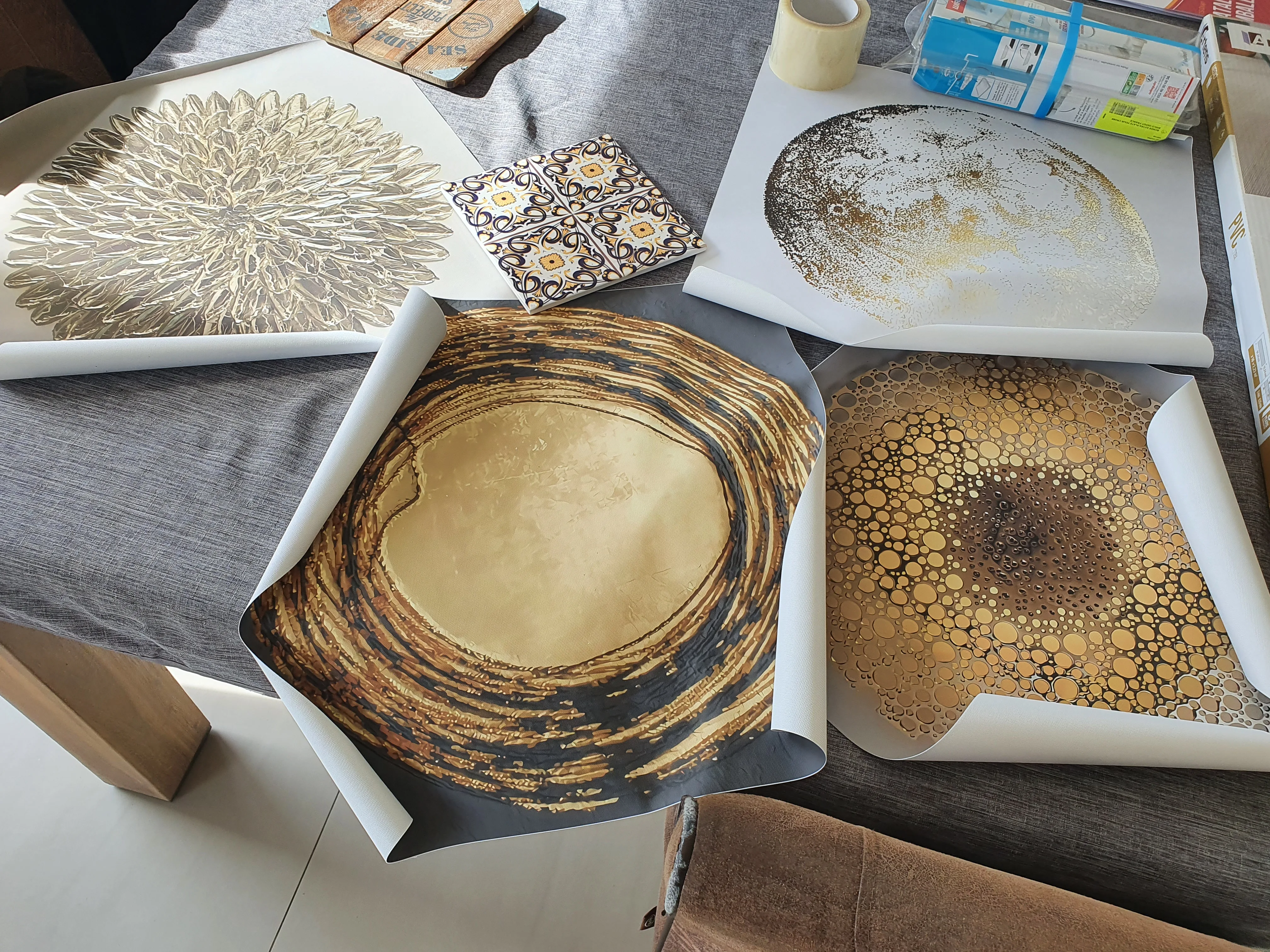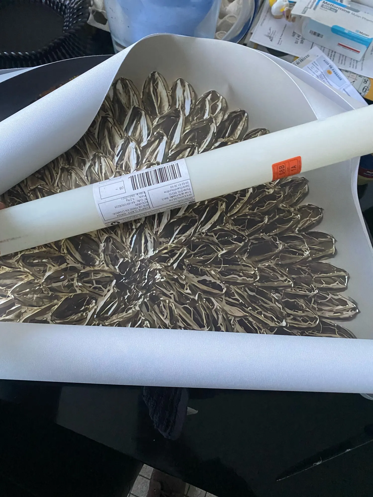 Постеры пришли в пластмассовой тубе. Напечатаны на холсте, на вид качество отличное, но при ближнем рассмотрении не так красиво. Если бы увидела вживую, то за эту цену бы без рамки не купила. Потому что по факту выйдет гораздо дороже