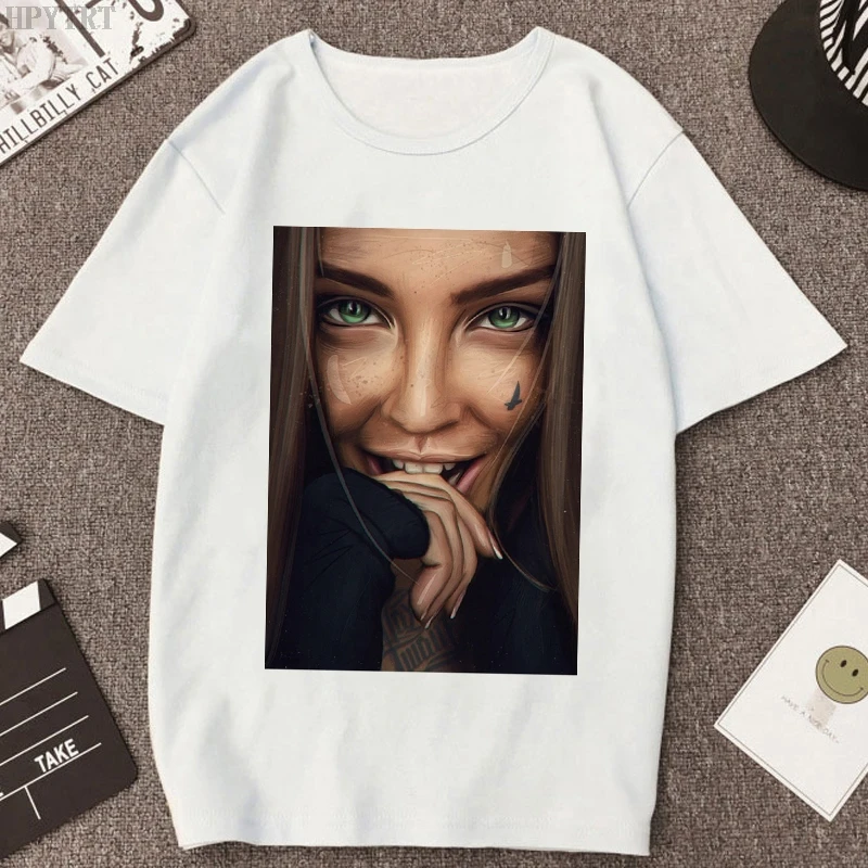 2021 Новая красивая женщина для курящих Повседневная футболка с при...